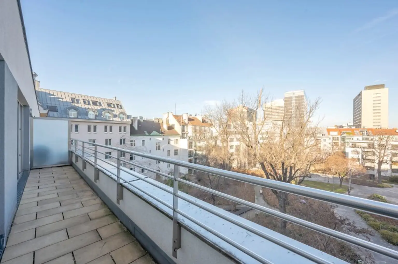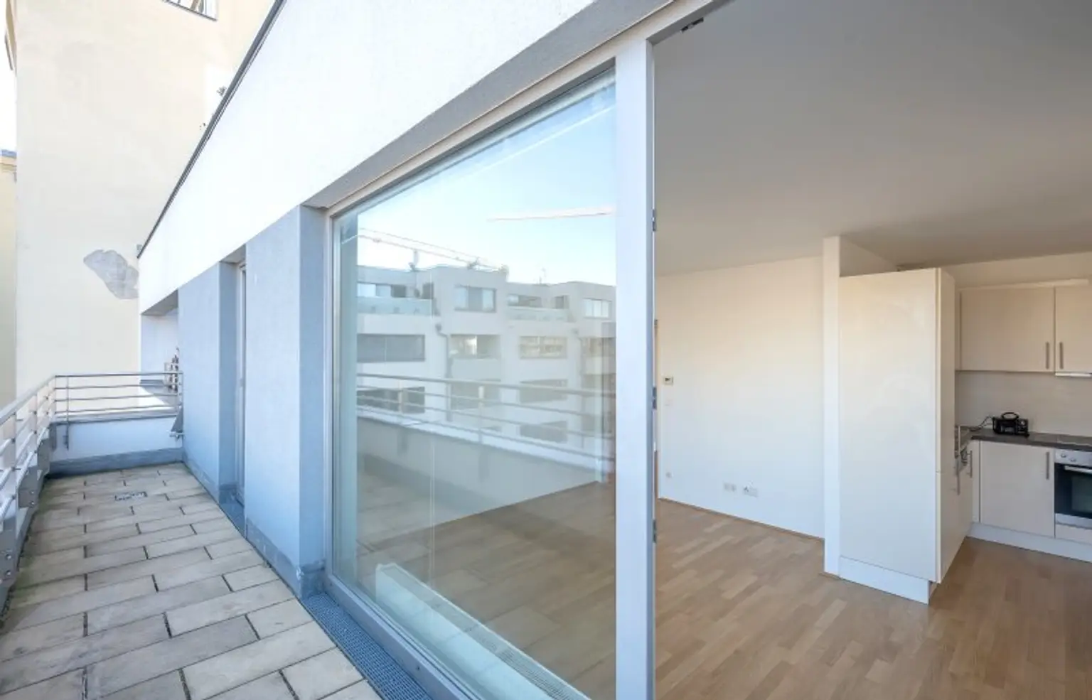 Die Wohnung befindet sich im fünften Stock eines sehr gepflegten Neubau-Mehrparteienhauses und ist über einen Lift erreichbar.