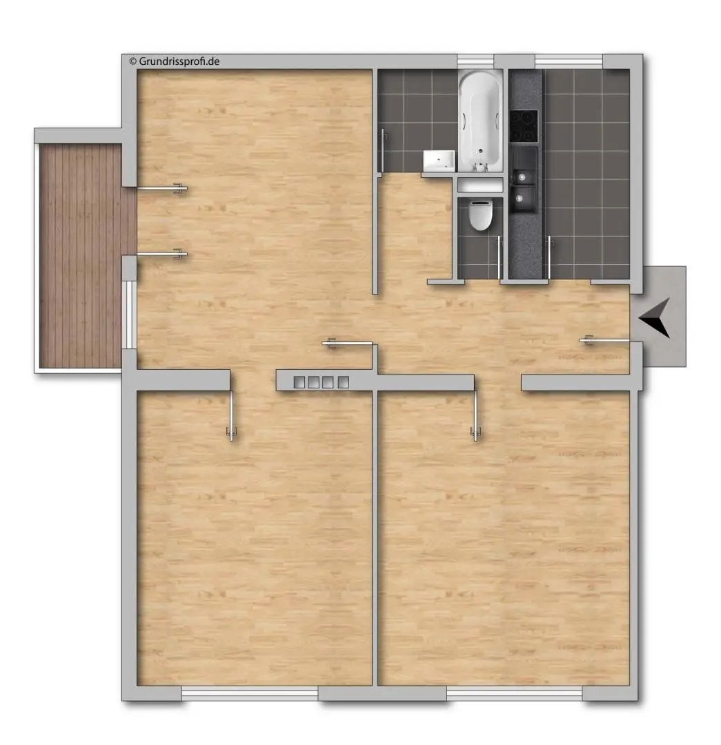 Die Wohnung verfügt über einen geräumigen Vorraum, Küche, Wohnzimmer mit Ausgang auf den Balkon, 2 große weitere Zimmer, ein neues Bad mit Dusche und separates WC. Die Wohnung wurde komplett renoviert und ist mit schönen Laminatböden und Fliesen ausgestattet.