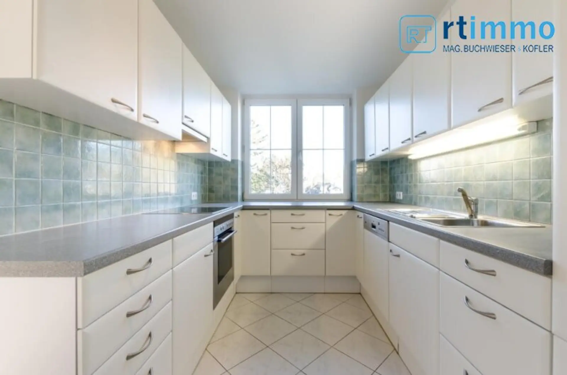 Fischgrätparketten; Küche und Naßräume sind verfliest; Küche komplett eingerichtet mit Kühl/Tiefkühlkombination, Ceranfeld, Backofen, Geschirrspüler, Mikro; Jalousien; Bad mit Fenster, Wanne, Bidet, WC, extra Dusche.