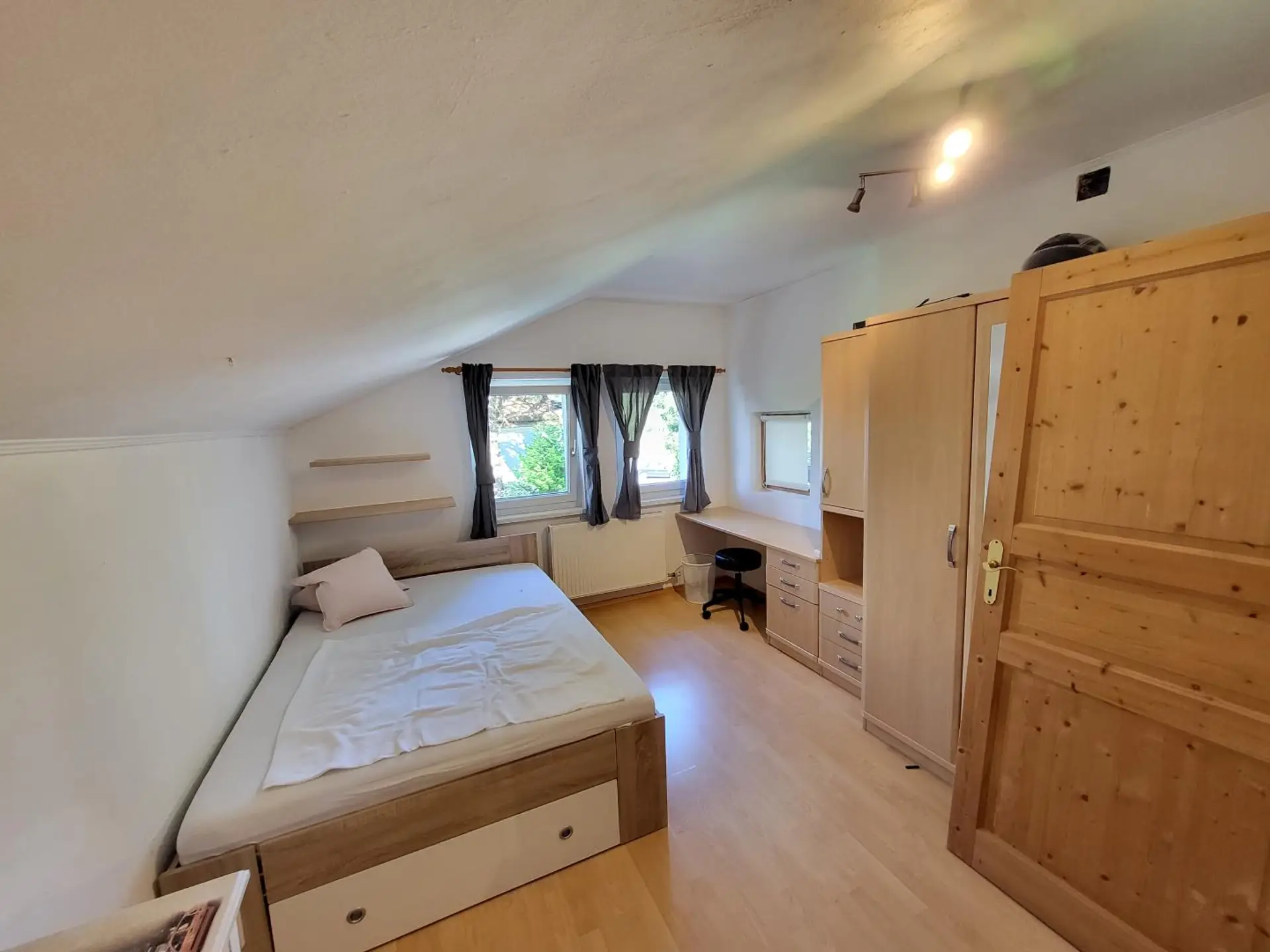 Dachgeschoss: Wohnzimmer mit Loggia, Schlafzimmer, Kinderzimmer, Badezimmer, WC