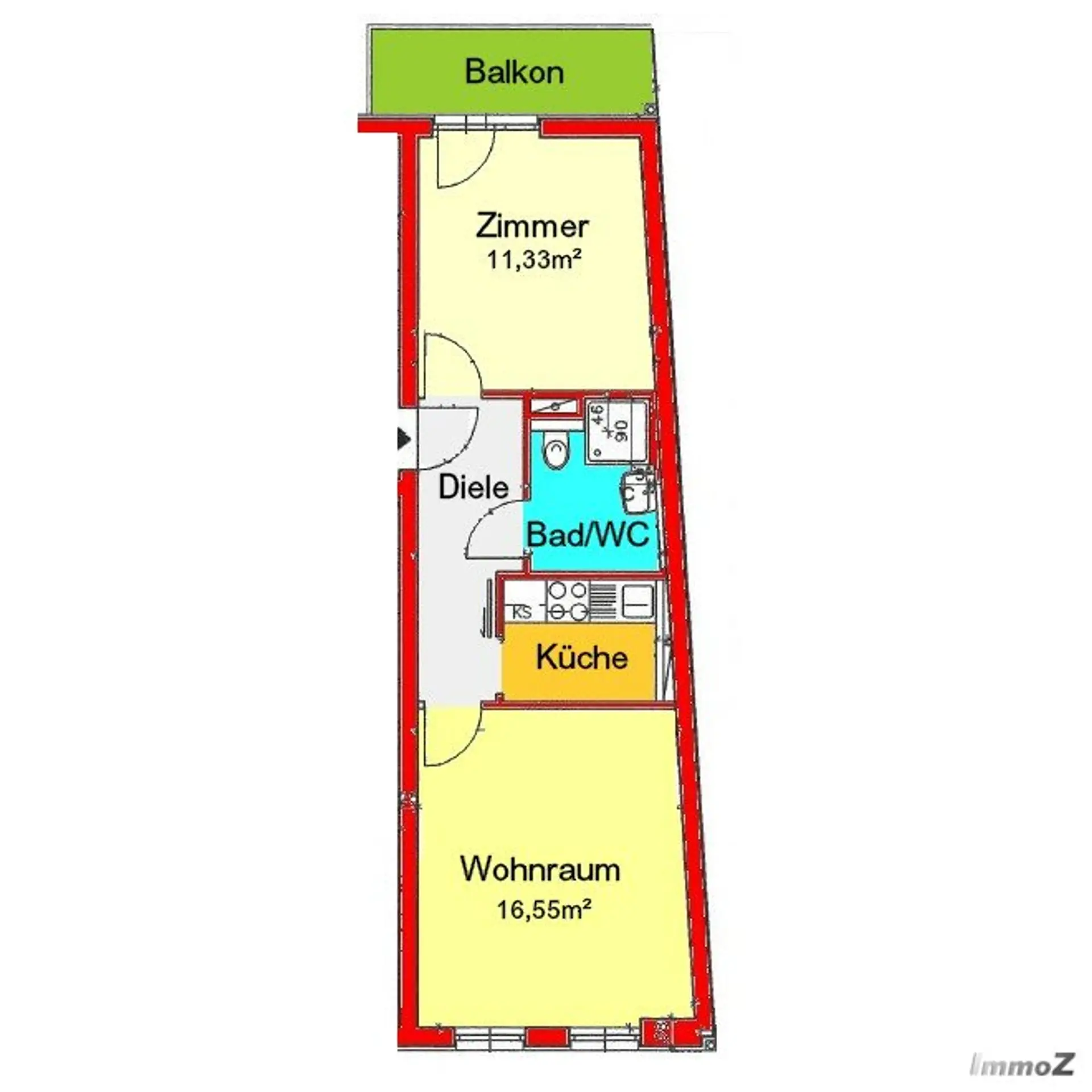 Sie besteht aus Diele, Wohnraum, Schlafzimmer, möblierter Küche, Duschbad mit WC und Balkon.