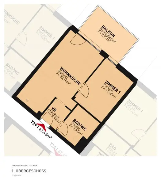 Am Drygalskiweg 59 in 1210 Wien entstehen 74 Eigentums- Vorsorgewohnungen in den Größen 39m² bis 87m² und 2, 3 bzw. 4 Zimmern. Egal ob Sie als Single, Pärchen oder Familie einziehen, Sie werden sich hier wohl fühlen. Die durchdachte Raumaufteilung deckt alle Bedürfnisse ab, die jeweiligen Freiflächen - Garten, Dachterrasse, Terrasse, Loggia, Balkon - bieten privaten Platz auch im Freien.