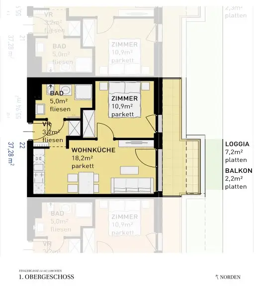 39 Eigentums- und Vorsorgewohnungen entstehen am Stadtrand von Favoriten, ein dynamischer Bezirk mit einer Mischung aus Tradition und Moderne. Hier entsteht für jeden Bedarf die passende Lösung. 2 bis 4 Zimmer zwischen 36m² und 87m², alle inklusive privater Freifläche, stehen für Ihren individuellen Wohntraum zur Verfügung.