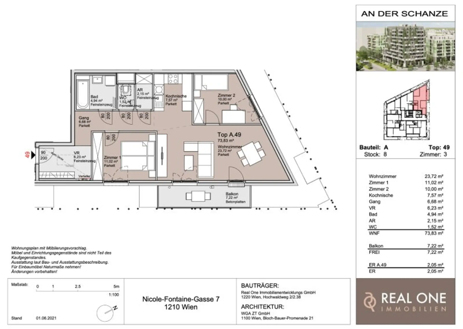 Es ist an der Zeit, Wohnqualität neu zu definieren, Maßstäbe in Sachen Lebensqualität, Architektur und Service zu setzen. Überragende Architektur, die schon auf den ersten Blick fasziniert und aufgeteilt auf vier Gebäudekörpern genau das hält, was sie von außen verspricht. Das alles entsteht nun in Wien, nahe der Alten Donau auf einem Eigengrund. Lassen Sie sich die Welt zu Füßen legen!
