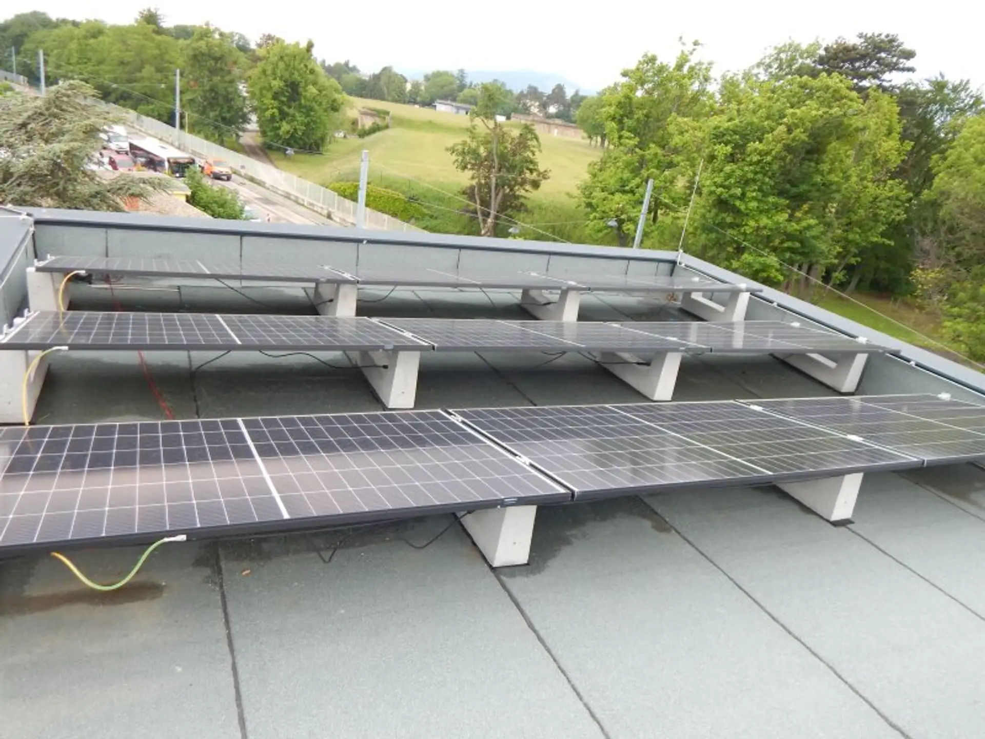 Heizung Luftwärmepumpe, Fußbodenheizung, Photovoltaikanlage am Dach, Thermofenster mit Jalousien.