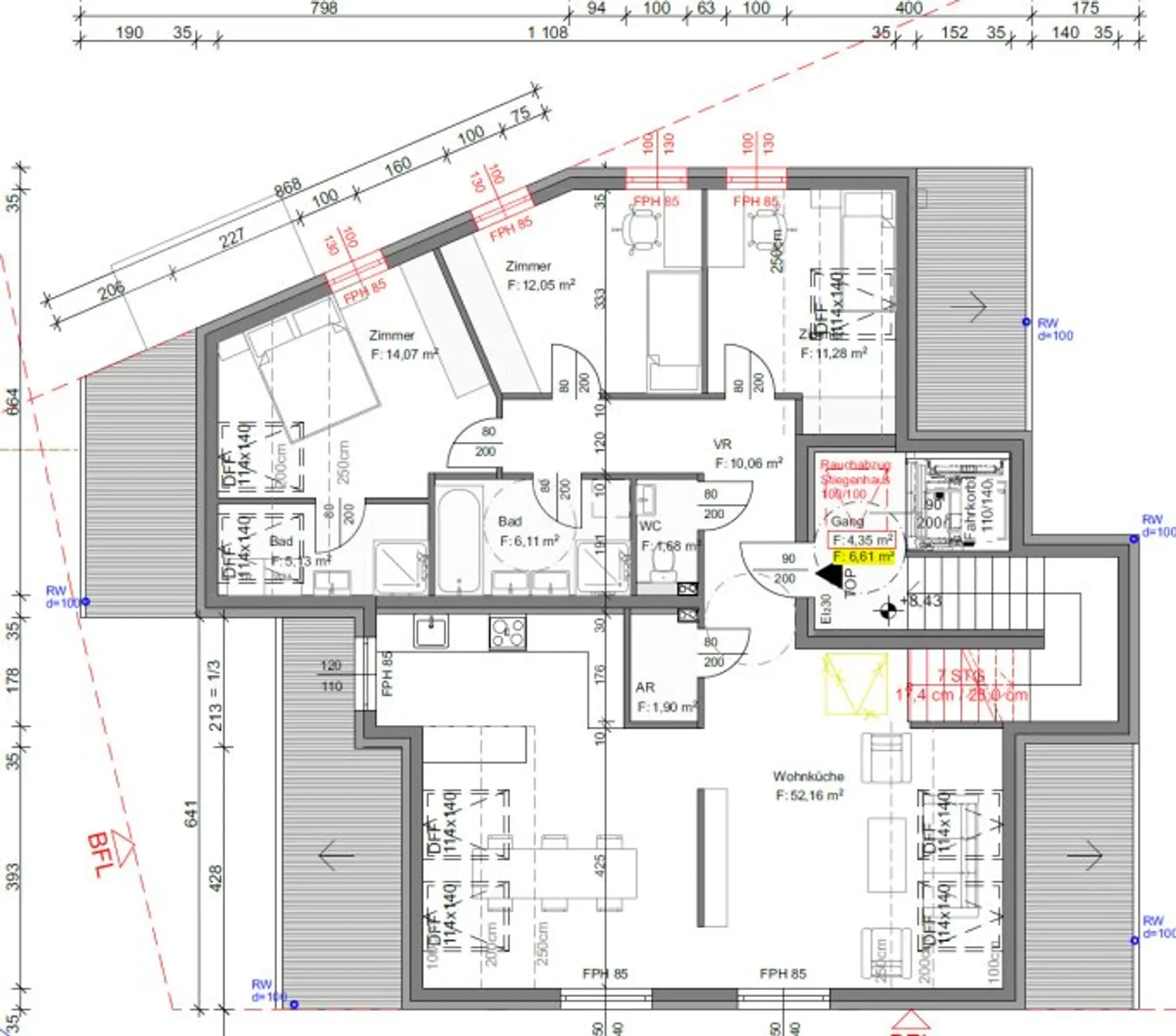 Top 7 Dachterrassenwohnung: 124 m² + 43 m² Dachterrasse + Kellerabteil.