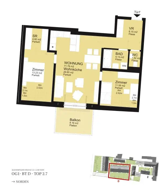 Alle Wohnungen werden schlüsselfertig übergeben, d.h. alle Sanitäranlagen, Fliesen und Parkettböden sind im Kaufpreis inkludiert. Details über die Ausstattung der Wohnungen entnehmen Sie gerne der Leistungsbeschreibung im Booklet.