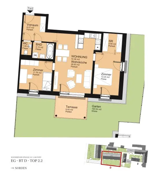 Alle Wohnungen werden schlüsselfertig übergeben, d.h. alle Sanitäranlagen, Fliesen und Parkettböden sind im Kaufpreis inkludiert. Details über die Ausstattung der Wohnungen entnehmen Sie gerne der Leistungsbeschreibung im Booklet.