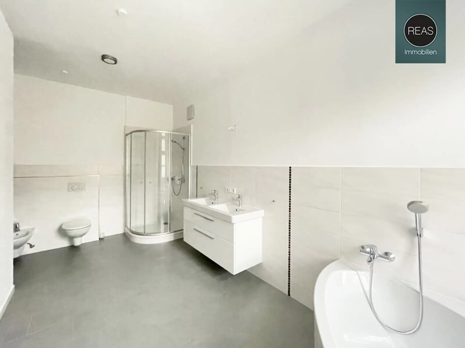 * 1 großes Badezimmer samt Eckbadewanne, Doppelwaschbecken, Duschkabine, WC, Bidet sowie Platz für eine Waschmaschine und Trockner