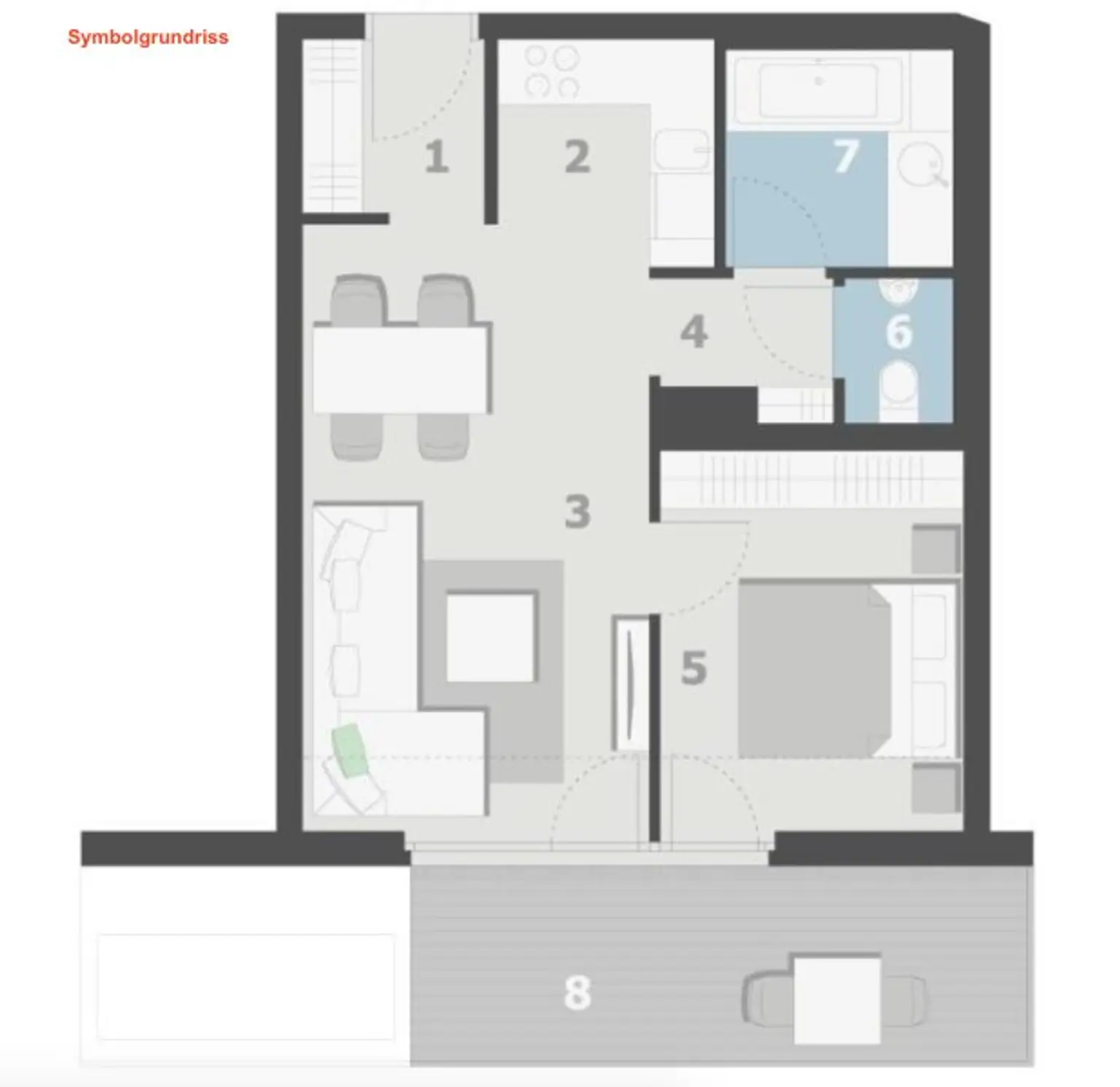 * Freiflächen: Erholen Sie sich auf Ihren eigenen Freiflächen – sei es auf dem Balkon, der Loggia, im Garten oder auf der Terrasse.