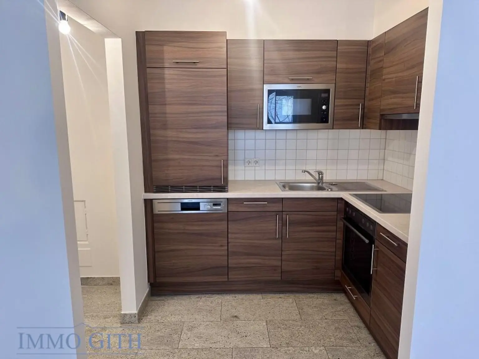 1 moderne Küchennische mit Einbaugeräten