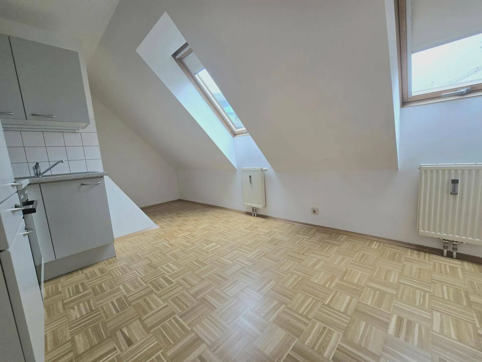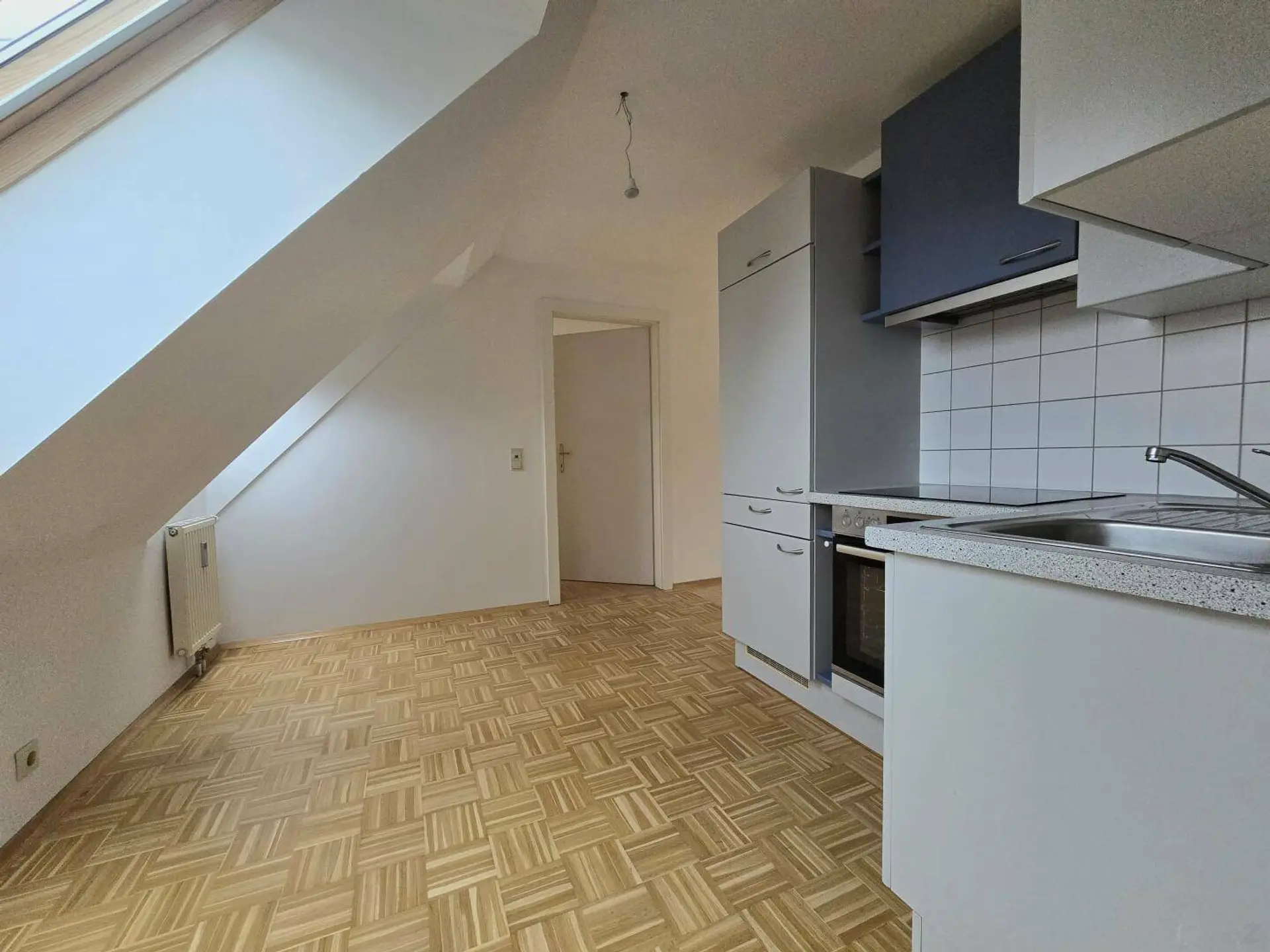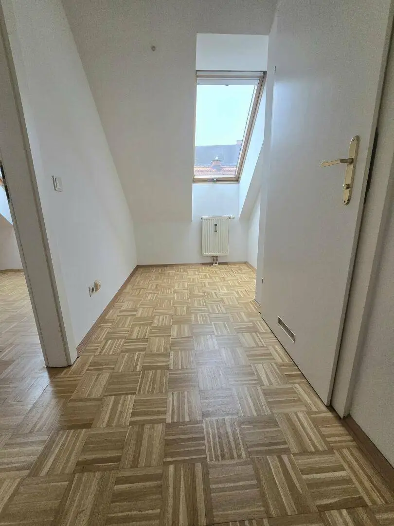 Sie liegt im Dachgeschoß(3.OG ohne Lift) eines Altbauhauses am Beginn der Jakoministraße und besteht aus Diele, Wohnraum mit Küche, zwei extra begehbaren Zimmern und Wannenbade mit WC.
