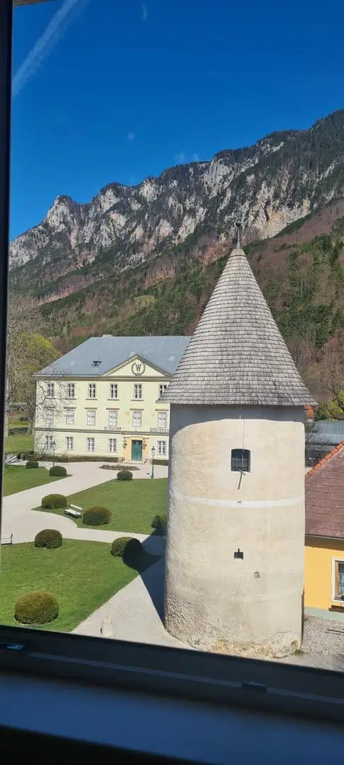 Von dieser Wohnung aus haben Sie auch wunderbare Sicht auf eine zentrale Gegend von Reichenau, wo sieht die Kirche, das Schloss Reichenau, mehrere Gastrobetriebe bzw. Konditorei und im Hintergrund eine Waldgegend und Rax - Plateau das Bild abrunden. Bei diesem Wohnhaus befindet sich auch ein großes Kellerabteil, wo man auch mit einem Rad, Kinderwagen usw. zufahren kann.
