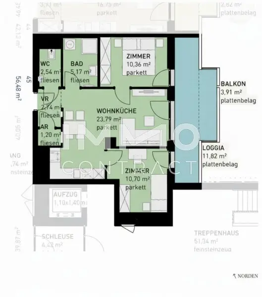 Ausstattung: Boden Fahrstuhl Wohnküche / offene Küche Tiefgarage Parkplatz Fahrradraum Fußbodenheizung Balkon Loggia
