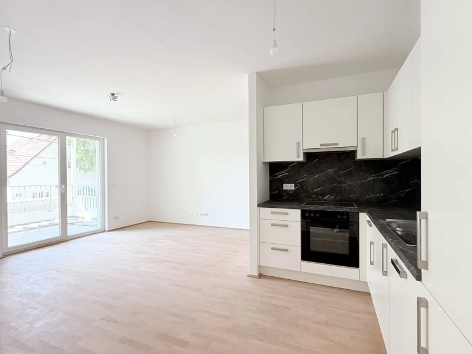 Zum Verkauf gelangt diese perfekt geschnittene Dreizimmerwohnung mit westseitigem Balkon im ersten Liftstock eines sehr geschmackvollen Neubauhauses (Fertigstellung November 2025) in Grün-Ruhelage.