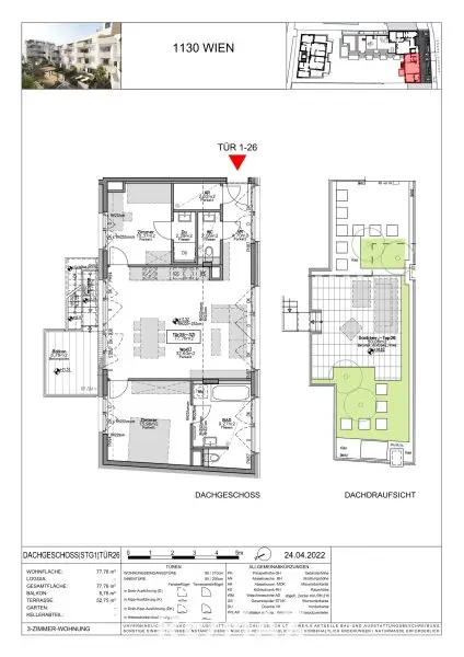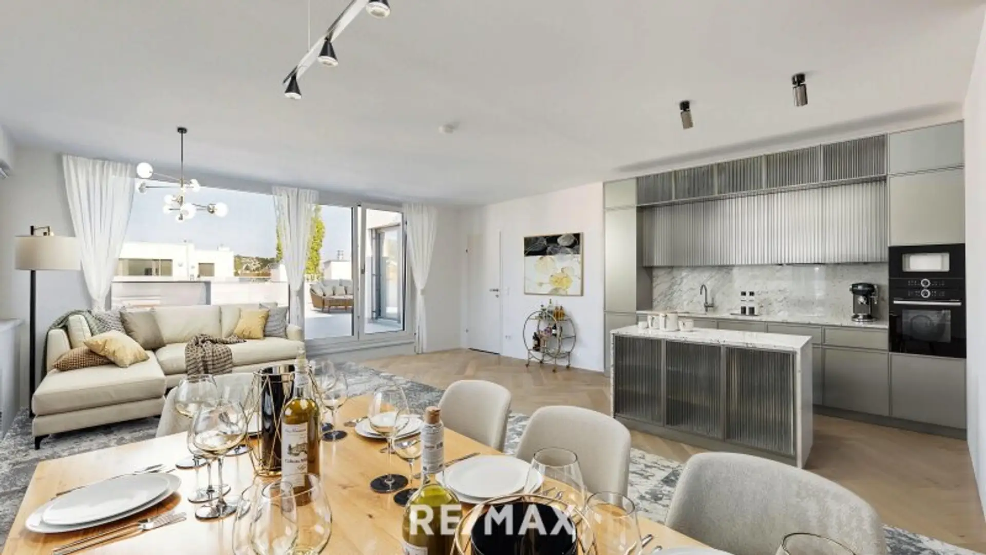 Die großzügige 3-Zimmer-Dachgeschosswohnung mit 77,76 m² besticht durch eine offene Wohnküche und eine flexible Raumaufteilung. Beide Schlafzimmer verfügen über ein eigenes Bad bzw. eine Dusche – ideal für zusätzlichen Komfort und Privatsphäre. Der perfekte Mix aus moderner Architektur, nachhaltiger Energieversorgung und bester urbaner Anbindung macht sie ideal für Paare oder kleine Familien. Genießen Sie sonnige Stunden auf rund 53 m² Dachterrasse – Ihr persönlicher Rückzugsort in der Stadt.