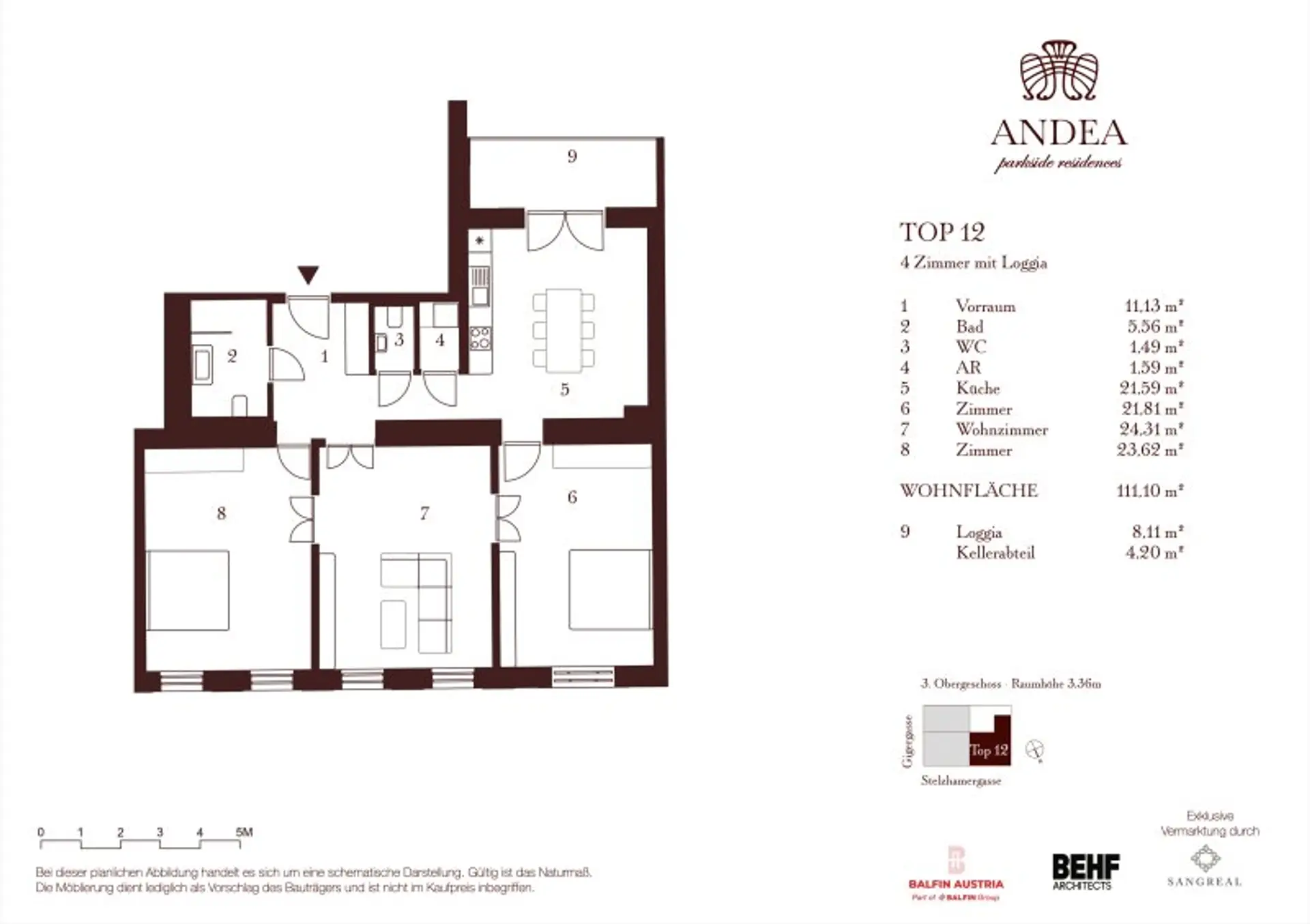 Lassen Sie sich von dieser beeindruckenden Vier-Zimmer-Einheit mit Loggia begeistern, die sich über ca. 111 m² erstreckt und eine großzügige Raumhöhe von über 3 Metern bietet. Diese elegante Wohnung im dritten Obergeschoss des Projekts ANDEA - Parkside Residences lässt den klassischen Wiener Altbaucharme wieder aufleben und verpasst einem Rohdiamanten einen exzellenten Schliff mit state-of-the-art Annehmlichkeiten. Ein Refugium für anspruchsvolle Bewohner, die städtischen Luxus und historisches Flair suchen.