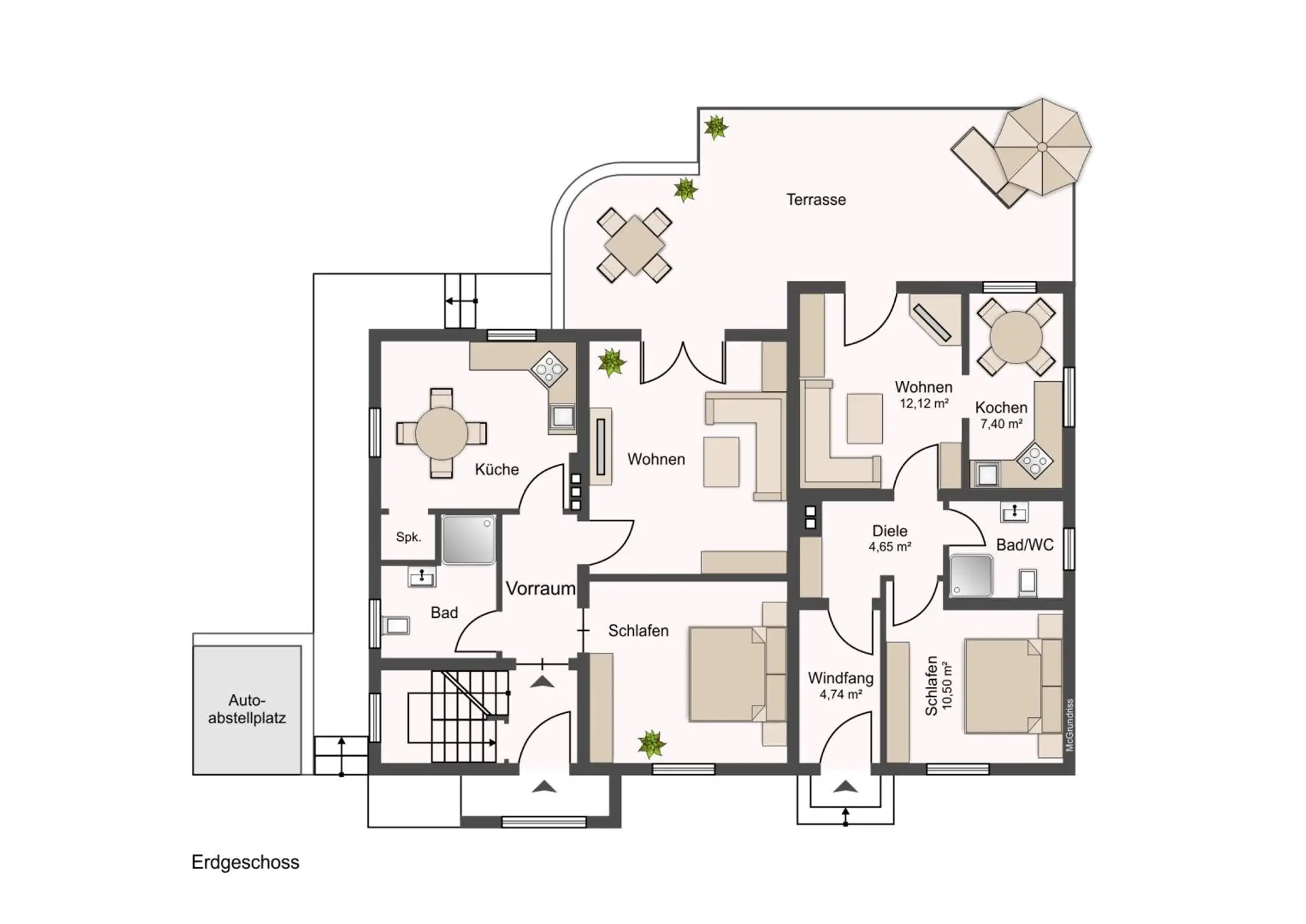 - Erdgeschoss: ca. 40 m² und ca. 70 m²