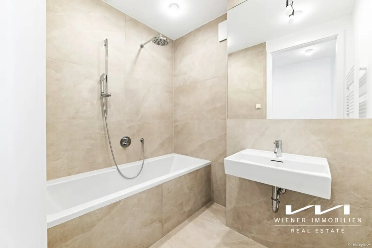 + Feinsteinfliesen in den Nassräumen