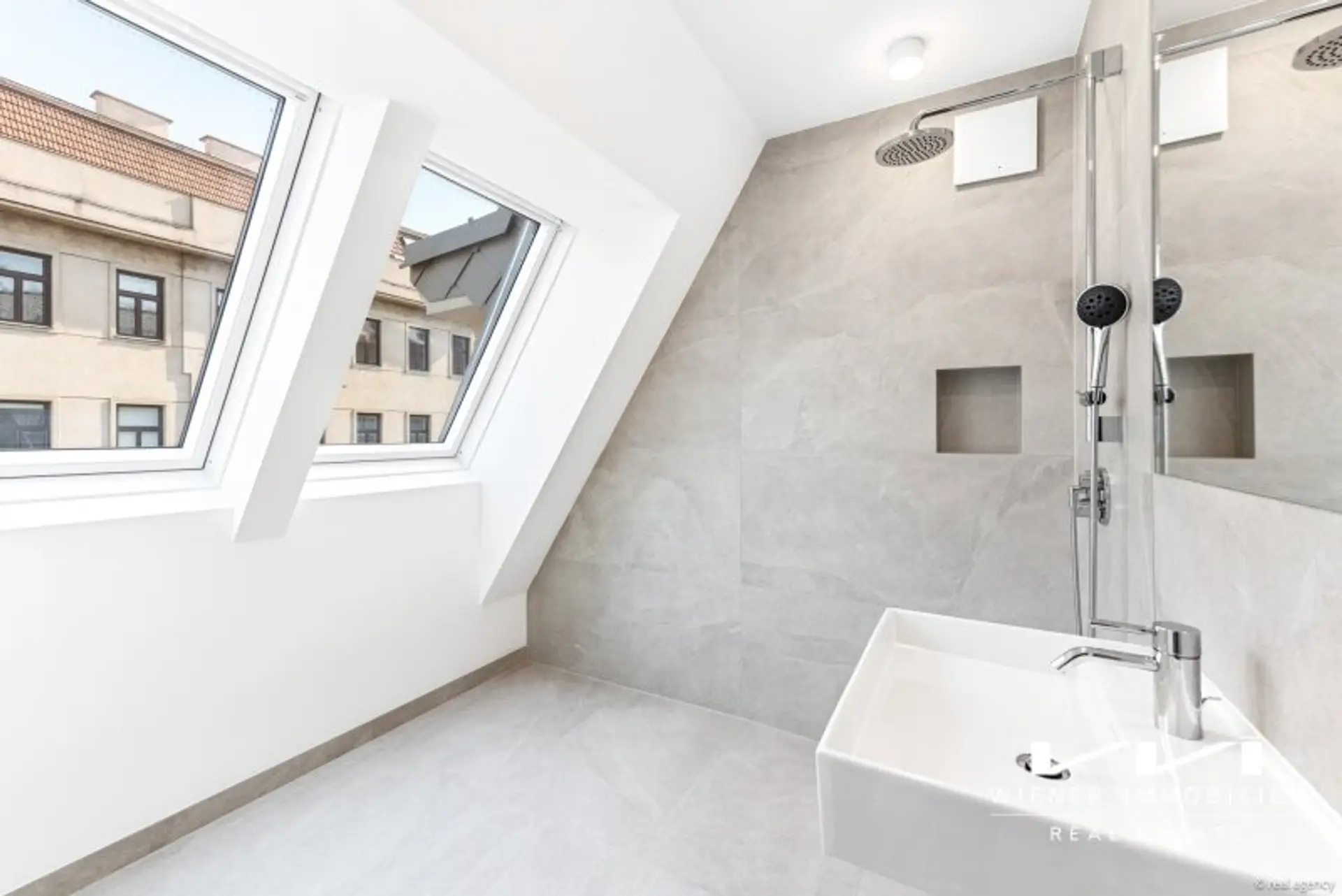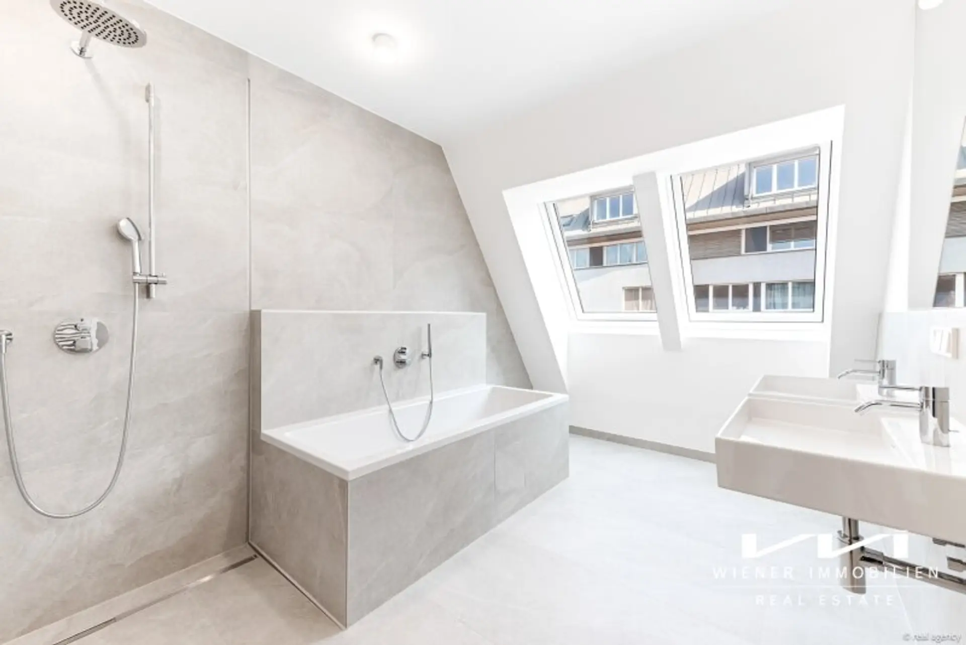 + Feinsteinfliesen in den Nassräumen