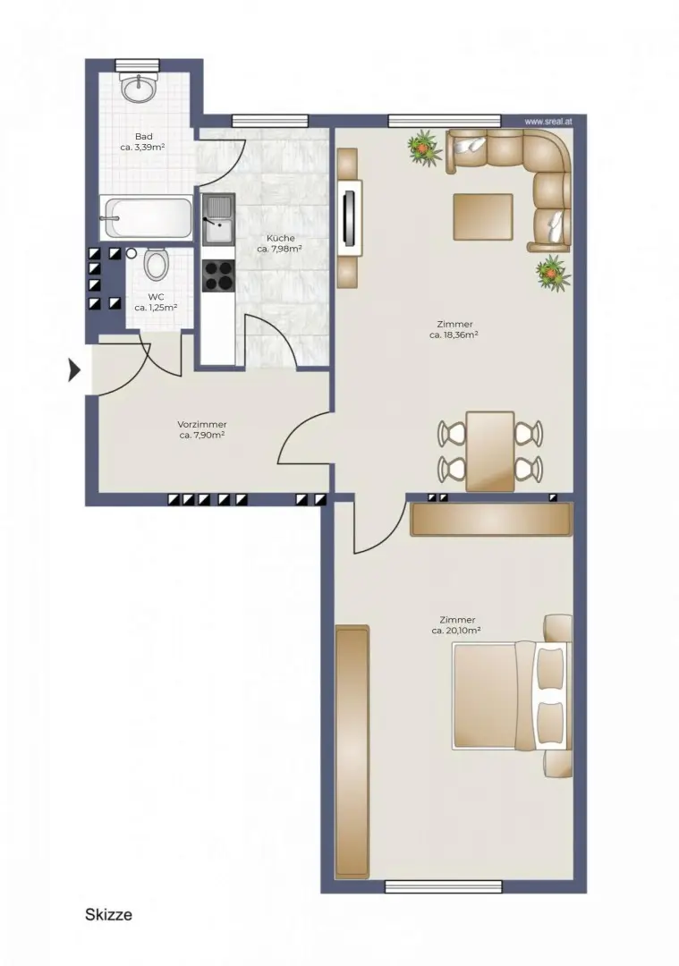 Die Wohnung verfügt über einen funktionalen Grundriss, der sich bestens für eine moderne Sanierung eignet: