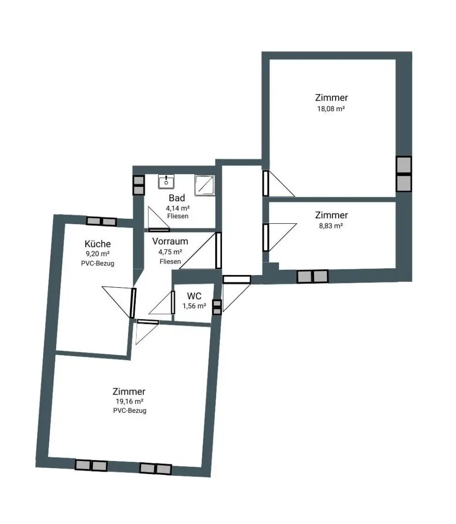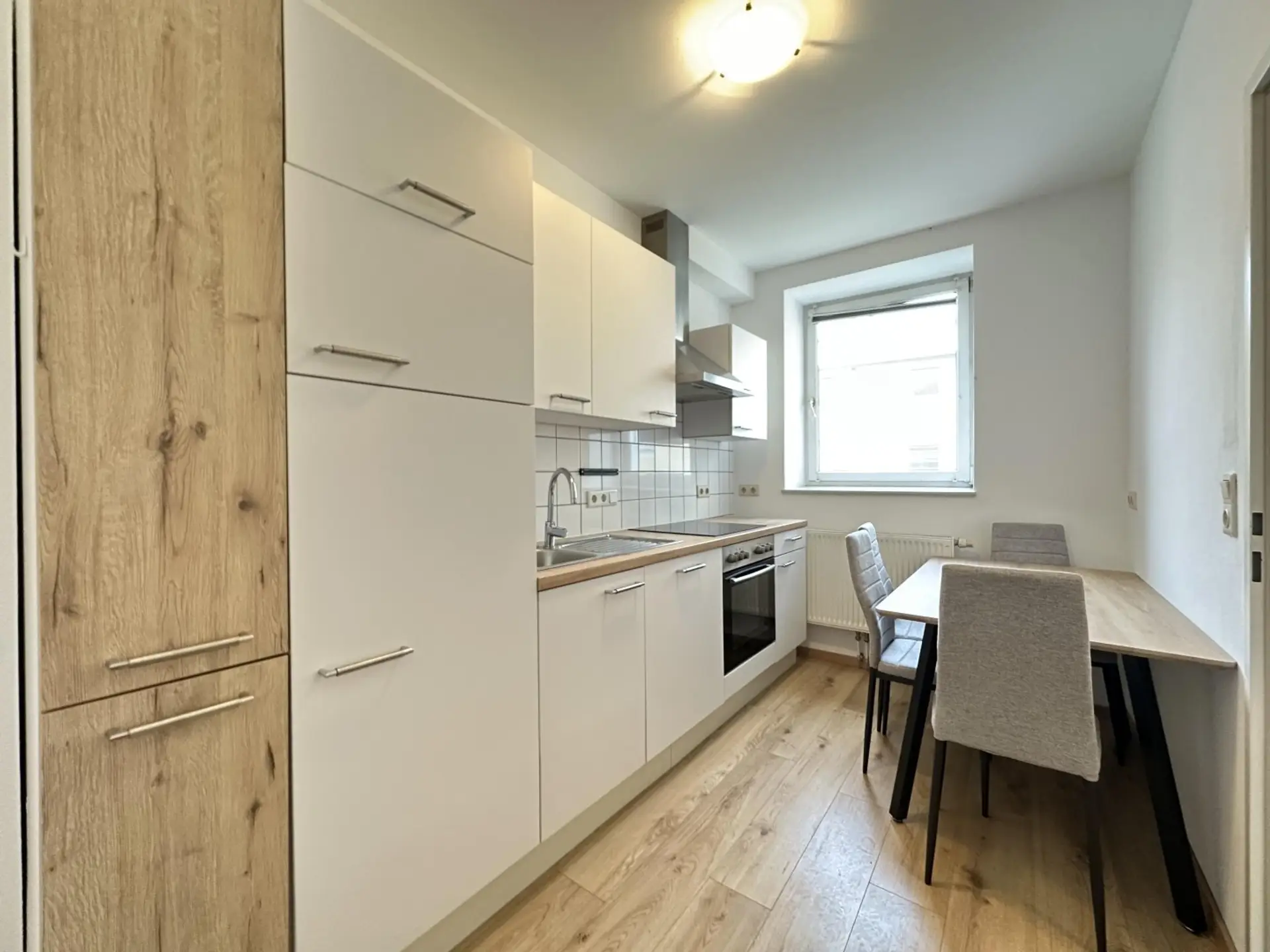 Die Wohnung verfügt über drei gut geschnittene Zimmer und eine separate Küche mit ausreichend Platz für einen Essbereich. Ein Vorraum sorgt für eine praktische Raumaufteilung. Das Badezimmer ist gepflegt und mit einer Dusche ausgestattet. Ergänzt wird das Raumangebot durch einen zur Wohnung gehörenden Abstellraum außerhalb der Wohnung.