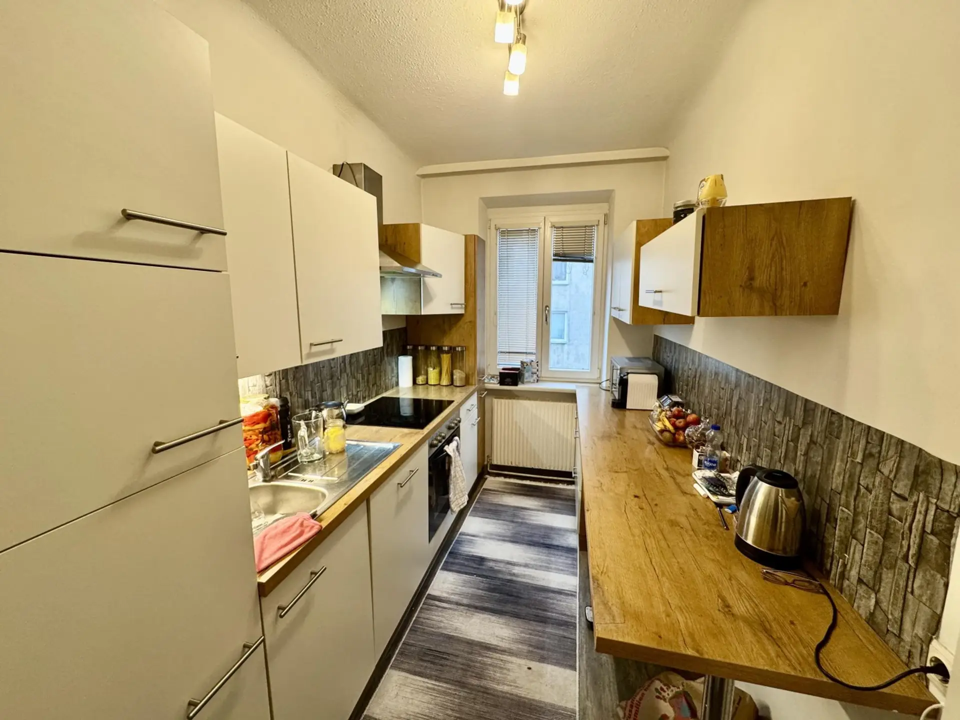 Die Küche ist praktisch und gut aufgeteilt. Sie bietet ausreichend Arbeitsfläche und Stauraum.