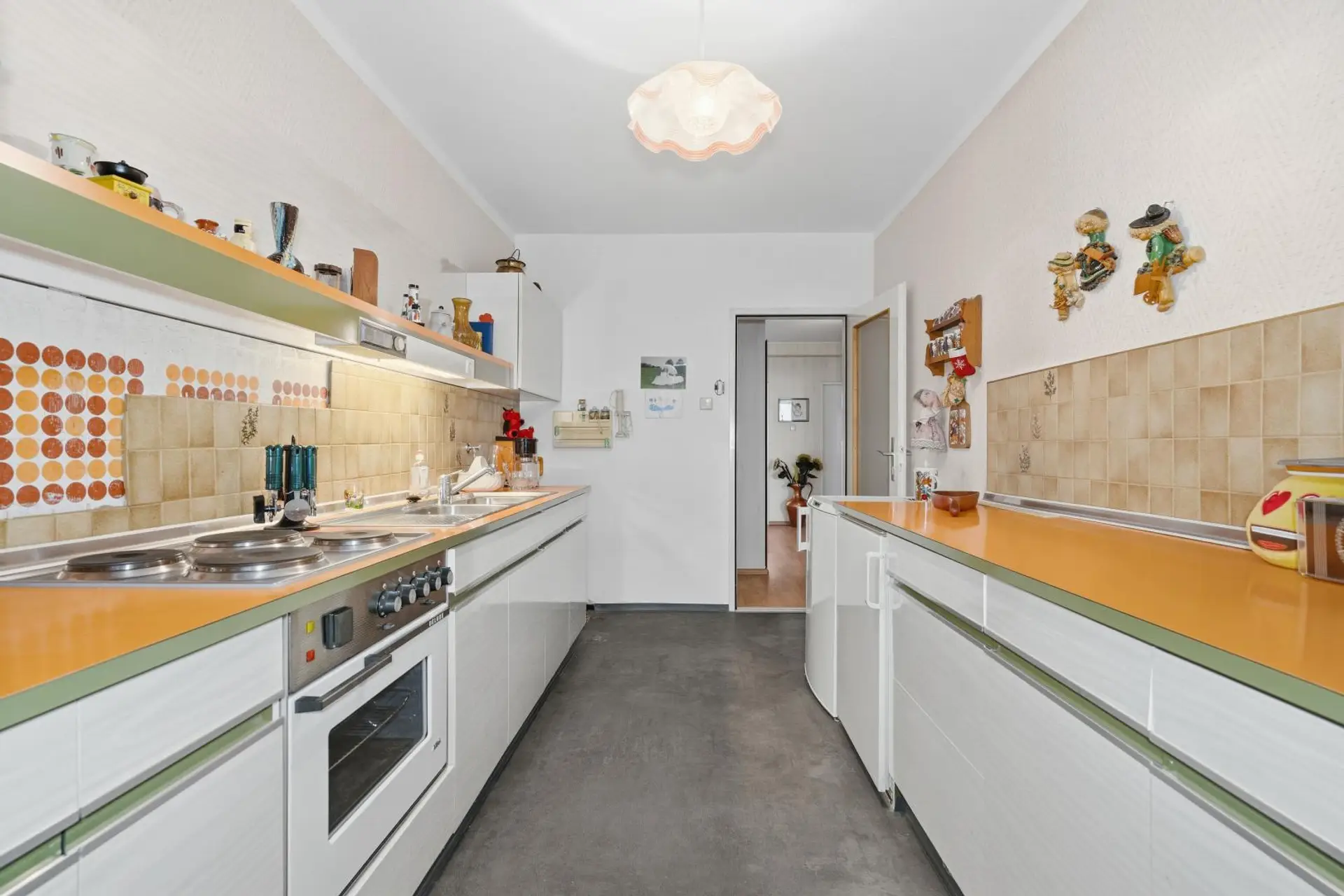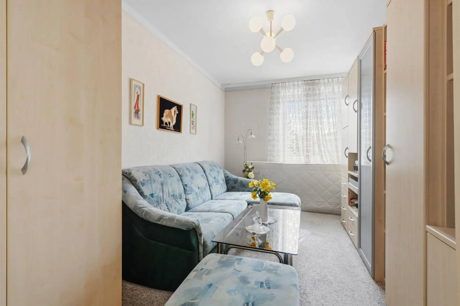The separate kitchen provides plenty of space for individual design and cooking. In addition, the apartment features a separate WC and a bathroom, further enhancing comfort. Two well-proportioned bedrooms offer flexible use, whether as bedrooms, children’s rooms, or a home office.