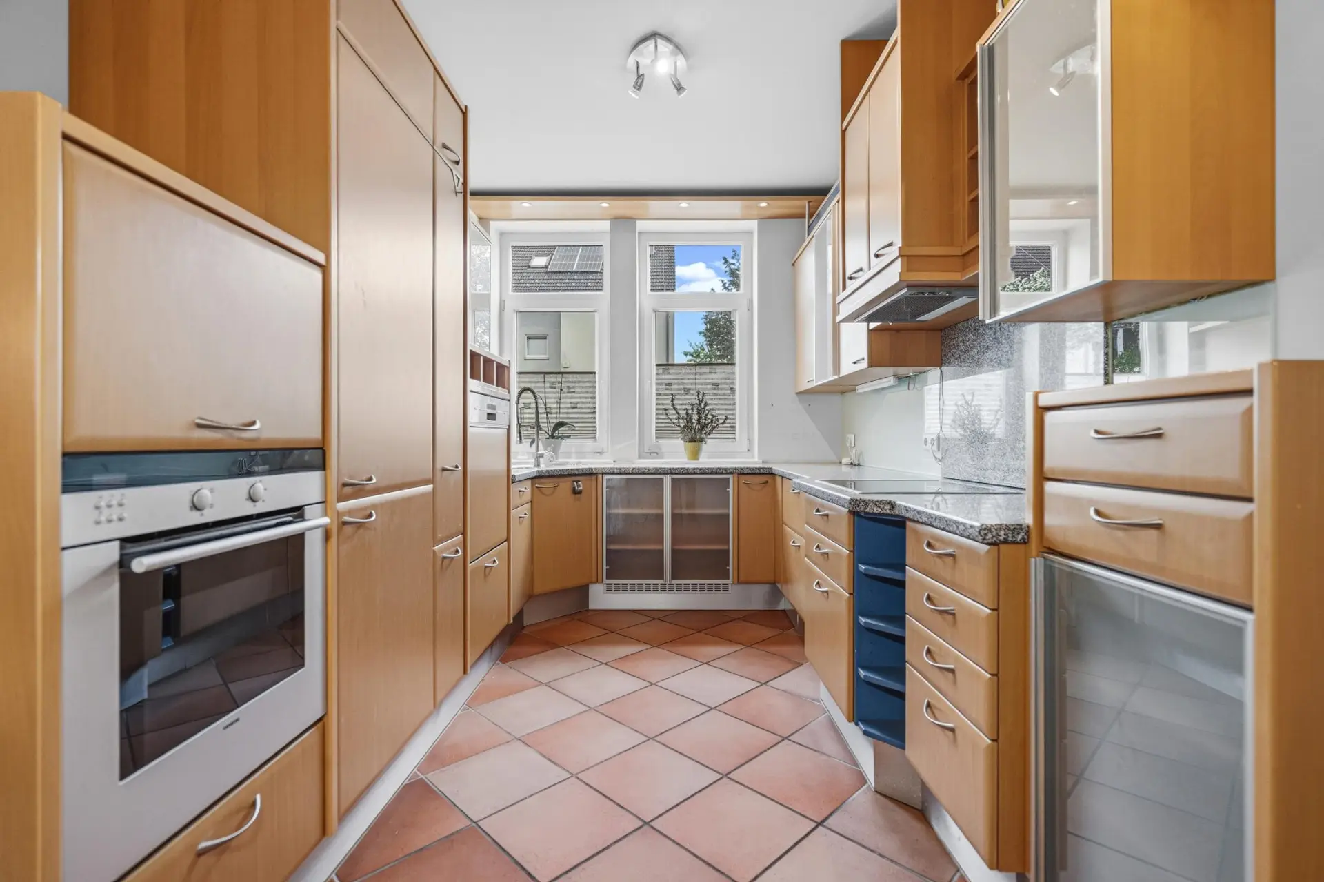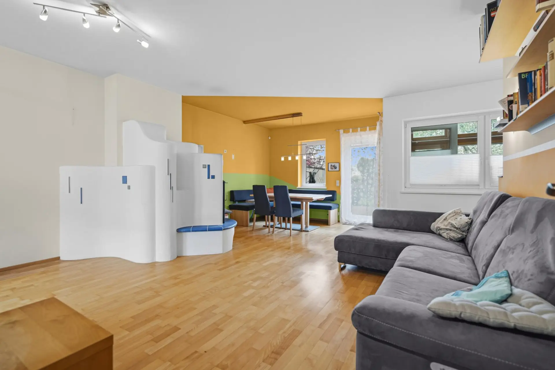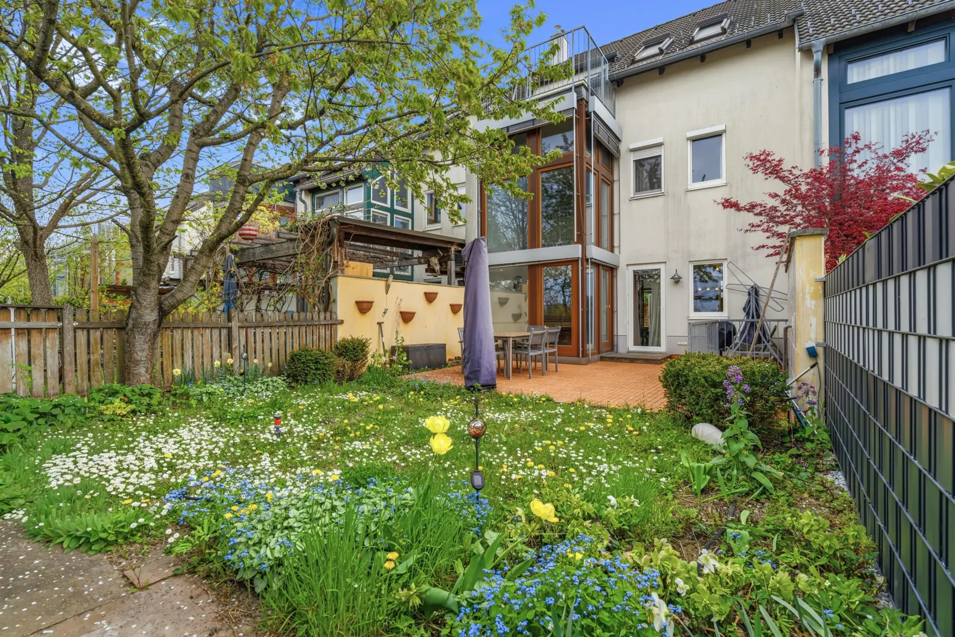 Große Fensterflächen sorgen für viel Tageslicht und schaffen harmonischen Übergang in den liebevoll angelegten, ca. 60 m² großen Garten, der zum Entspannen, Spielen und Verweilen im Grünen einlädt.