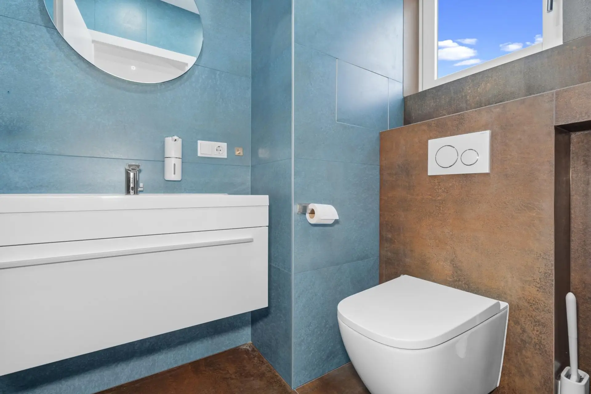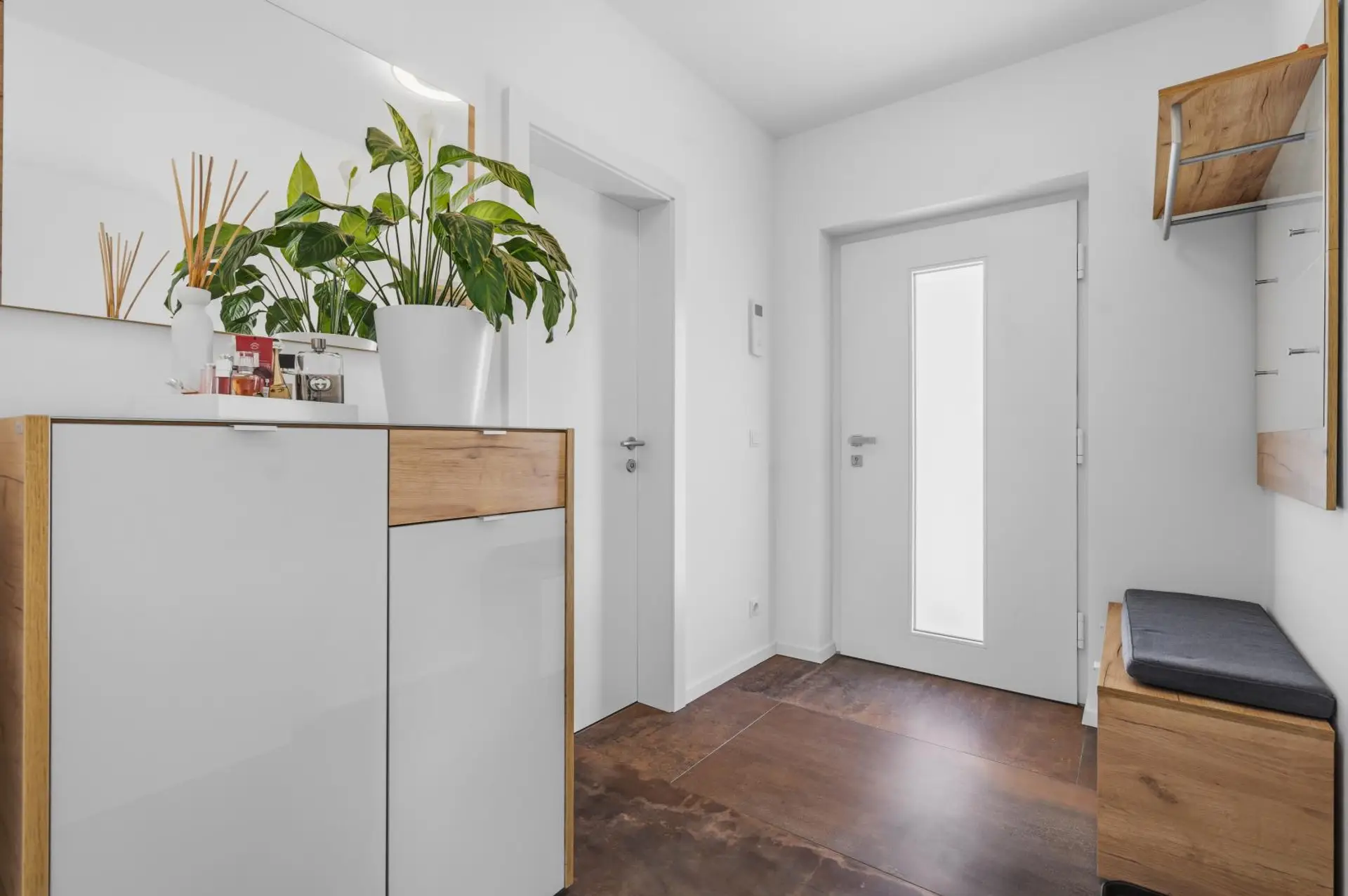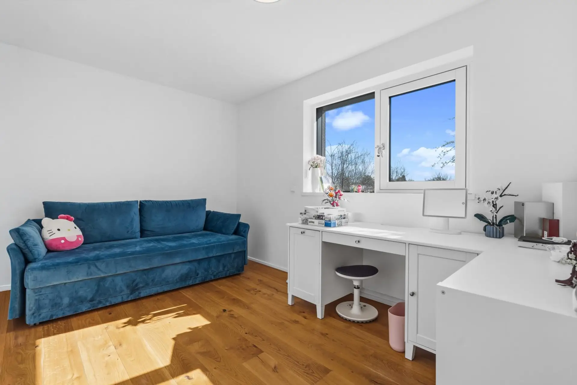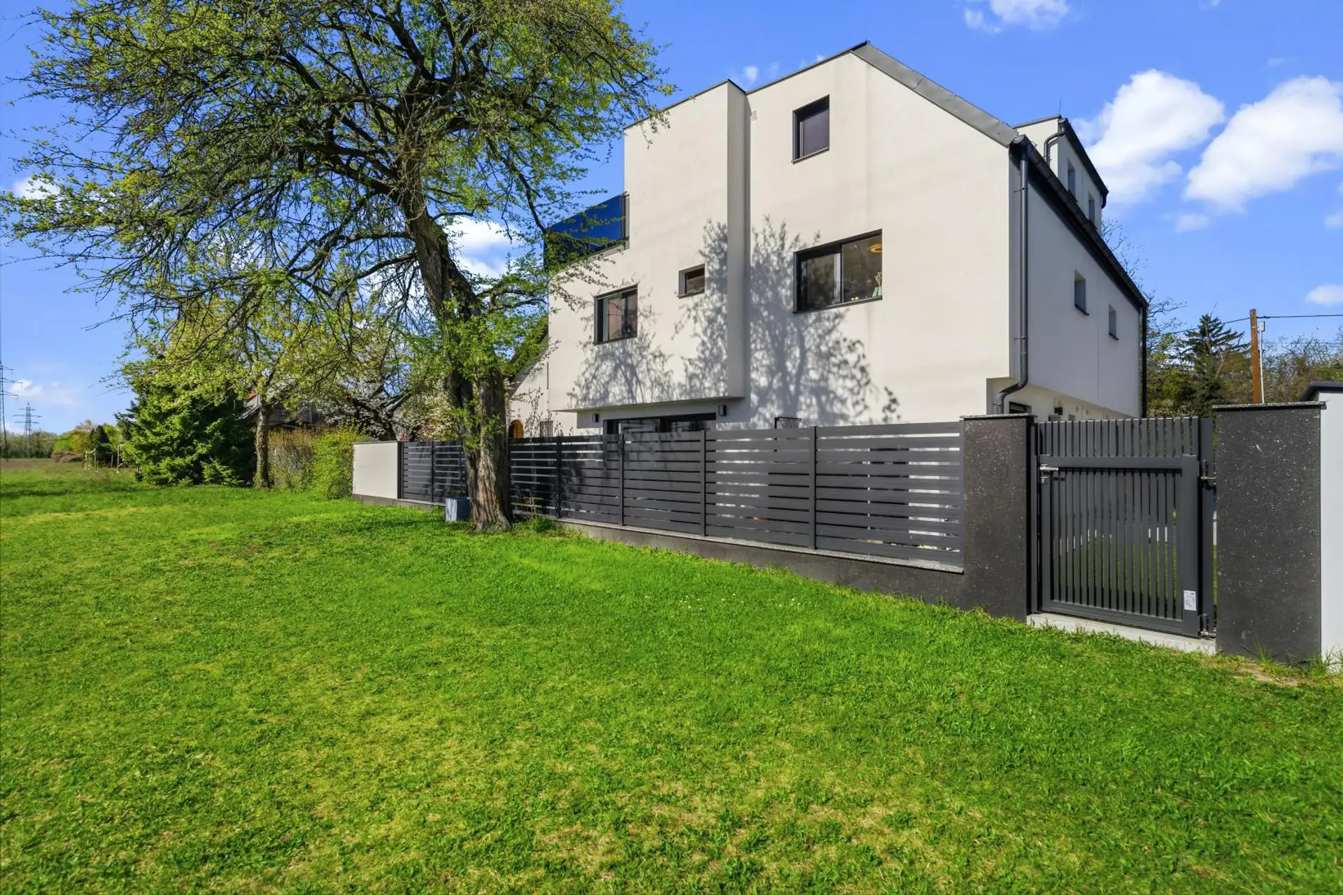 The entire house is heated באמצעות underfloor heating, which, together with the high-quality solid wood flooring, creates a particularly comfortable living atmosphere. External blinds are also part of the standard equipment and ensure the house remains pleasantly cool even on hot summer days.