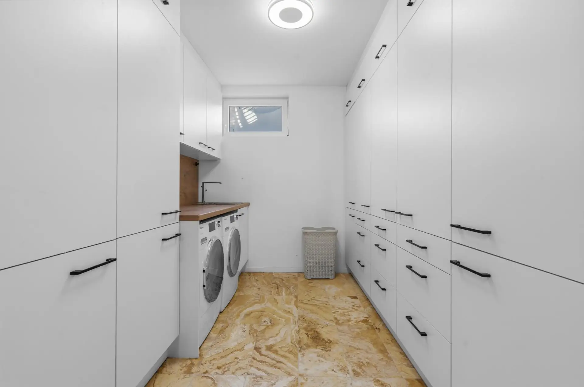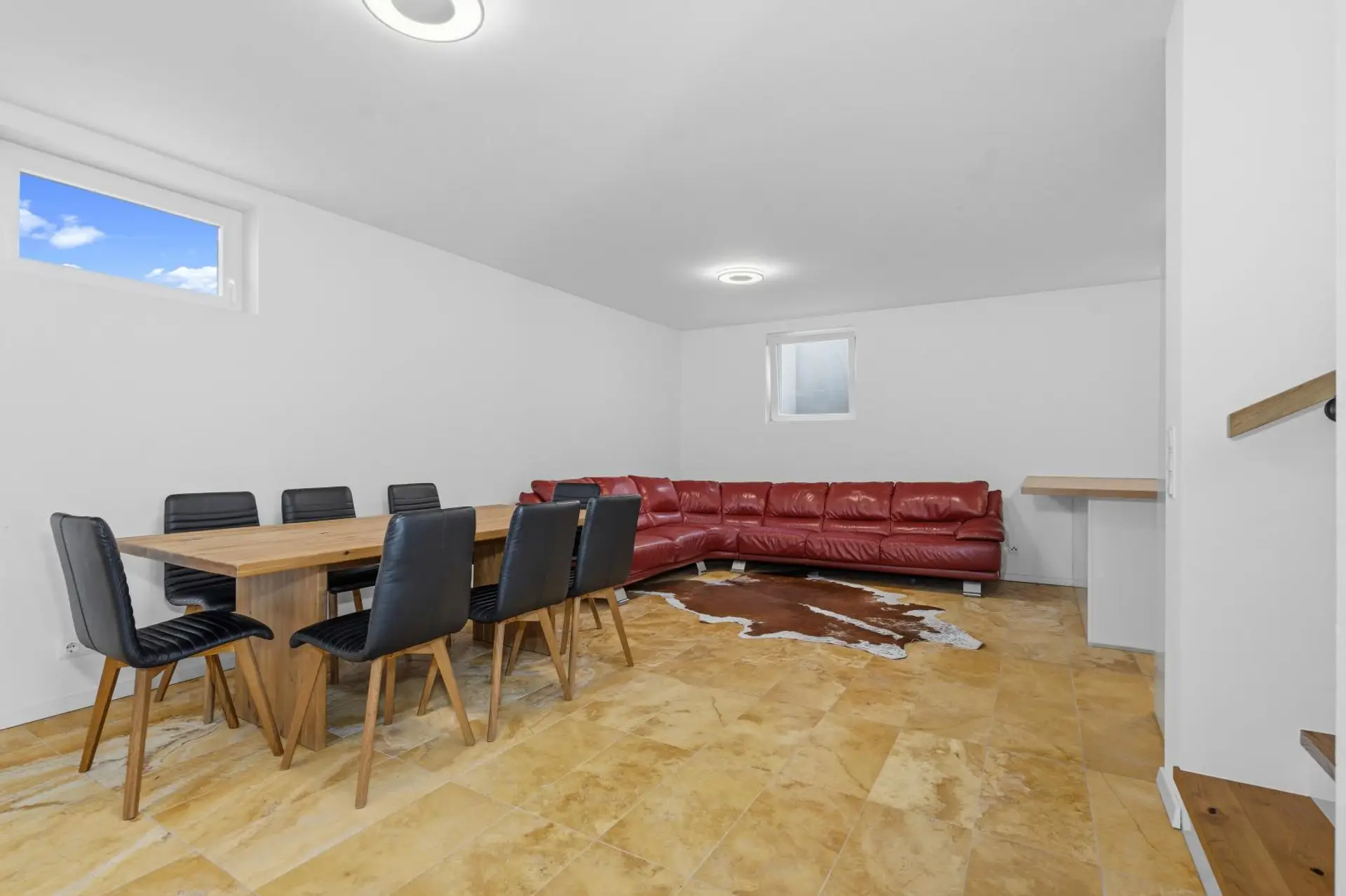 The basement offers plenty of space and flexibility. It includes another DAN kitchen, a boiler room, and a hot water tank. Whether you choose to use it as a fitness room, children’s playroom, or storage space is entirely up to you.