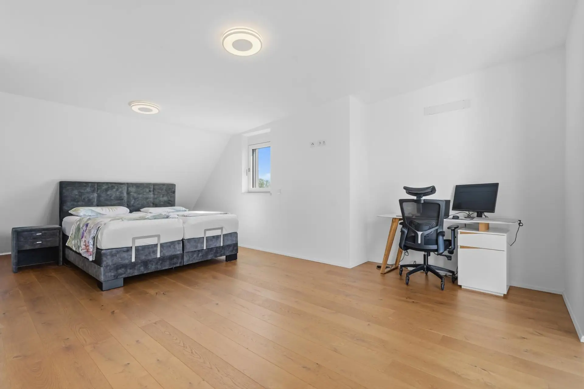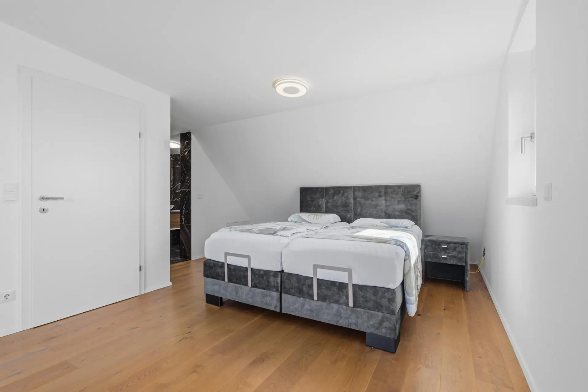 Im Dachgeschoss befindet sich ein weiteres Schlafzimmer, das sich ideal als ruhiger Rückzugsort eignet. Von dort aus haben Sie Zugang zu einer Terrasse. Zusätzlich steht Ihnen hier ein weiteres Badezimmer mit Dusche zur Verfügung.