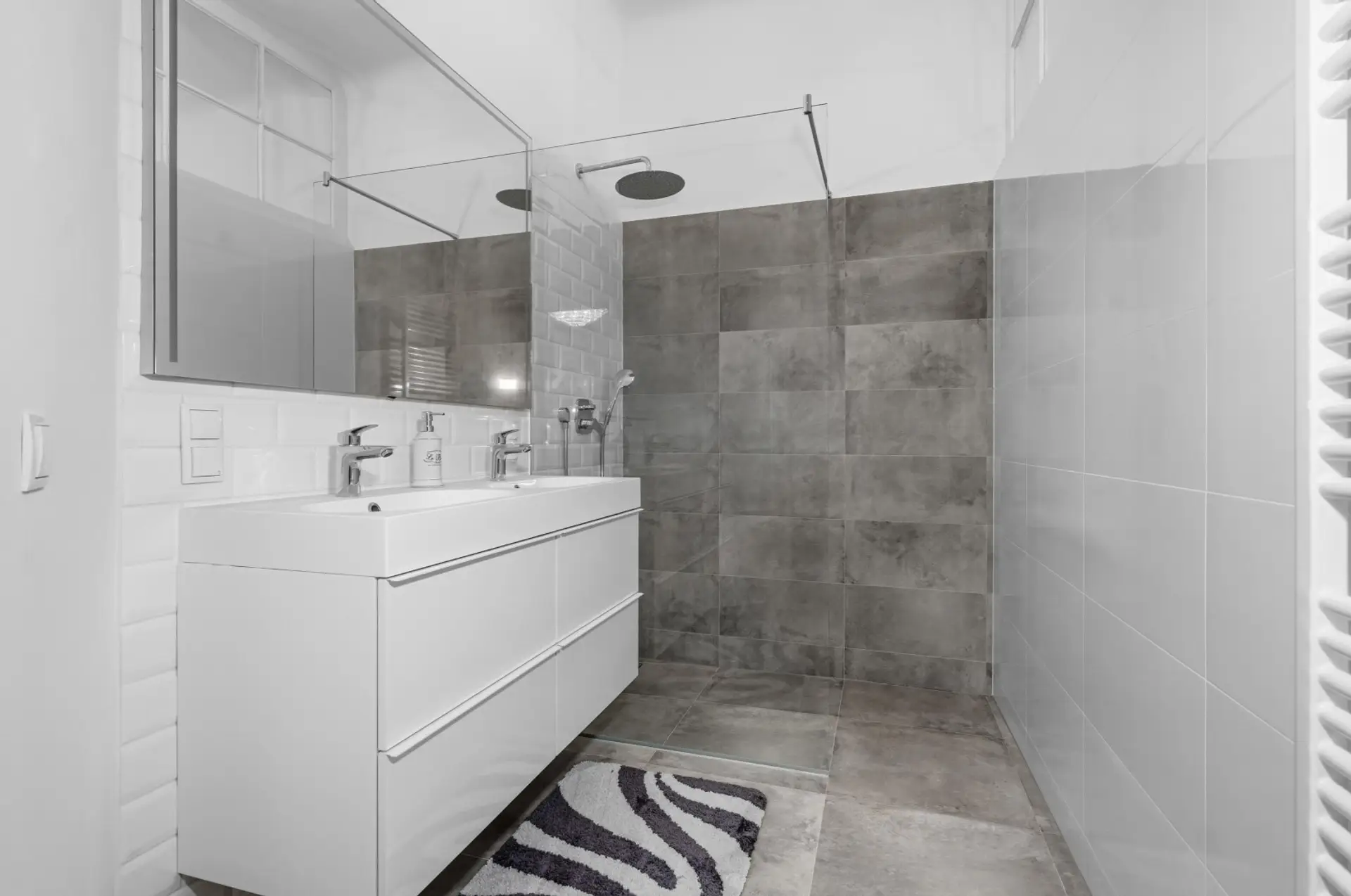 Ein weiteres Highlight ist das geschmackvoll und hochwertig sanierte Badezimmer. Klare Linien, moderne Materialien und eine stimmige Gestaltung schaffen eine Atmosphäre, die Funktionalität und Design auf angenehme Weise verbindet und den Anspruch der gesamten Wohnung konsequent fortführt.