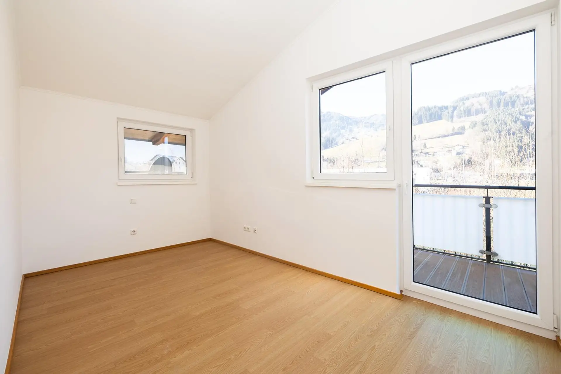 Das Herzstück der Wohnung öffnet sich nach draußen: Balkon und großzügige Terrasse laden dazu ein, sonnige Stunden zu genießen, den Blick in die umliegende Bergwelt schweifen zu lassen und den Tag entspannt ausklingen zu lassen – ob beim Frühstück im Freien oder bei einem Glas Wein am Abend.