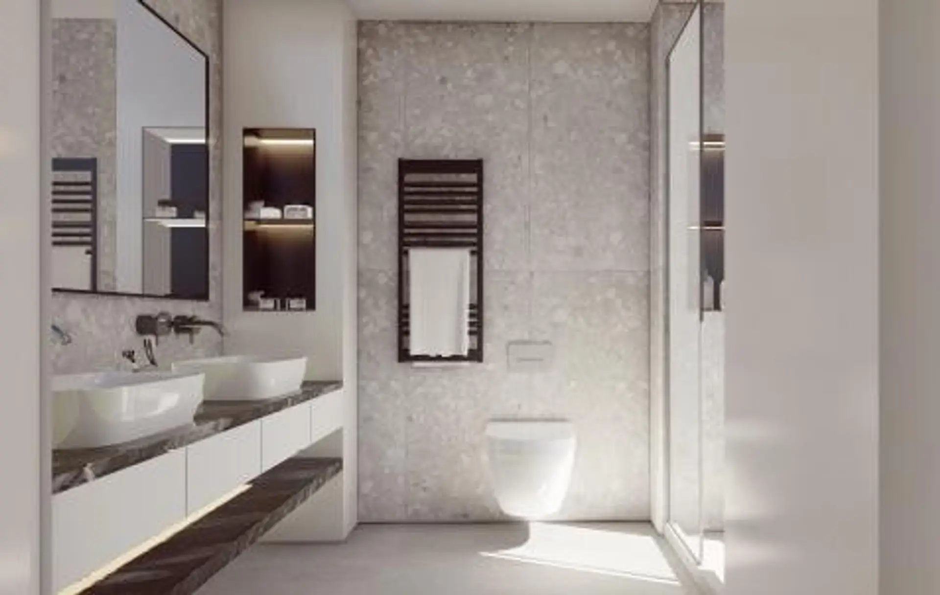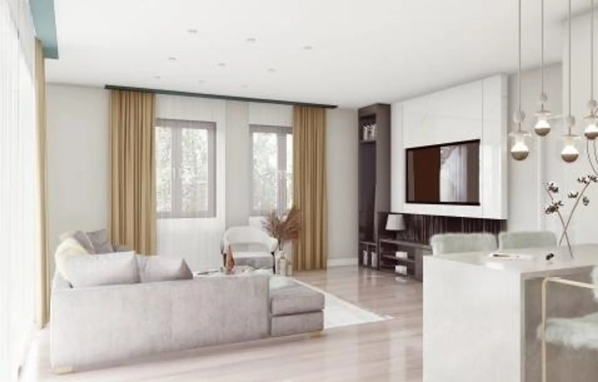 Im Erdgeschoss befinden sich ein einladender Eingangsbereich mit Garderobe (Windfang), ein Abstellraum, ein separates WC sowie ein Haustechnikbereich. Der großzügige Wohn-, Ess- und Küchenbereich ist offen gestaltet und bietet direkten Zugang zur gartenseitigen Terrasse.