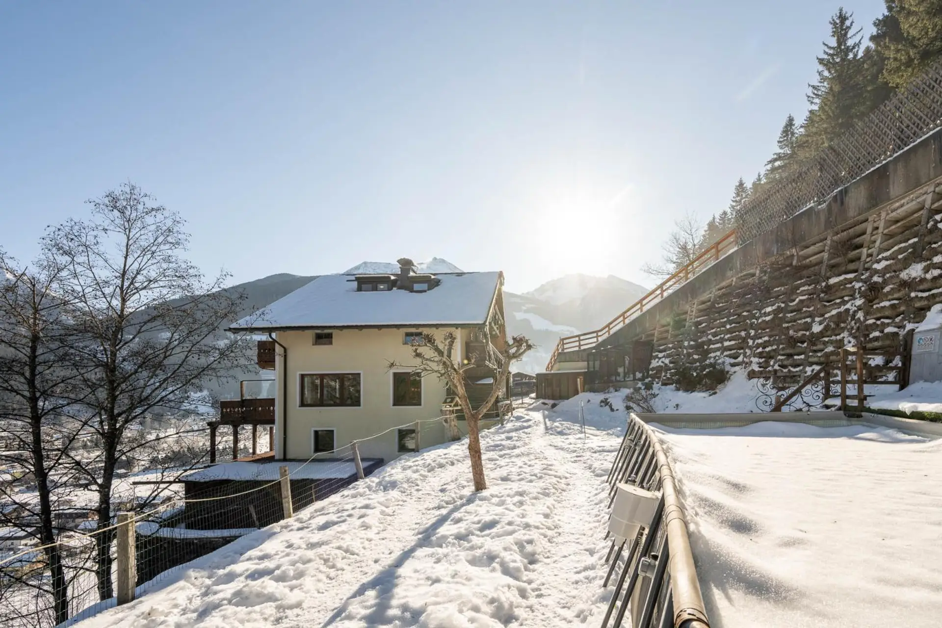 Schon beim Ankommen begeistert die ruhige, erhöhte Position mit einem wunderschönen Ausblick auf die umliegende Bergwelt. Die Nähe zur Bushaltestelle direkt neben dem Haus sowie ausreichend vorhandene Parkmöglichkeiten sorgen für eine komfortable Erreichbarkeit – sowohl für Bewohner als auch für Gäste.