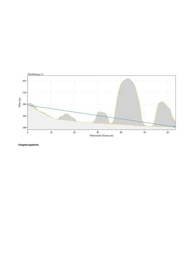 Der von der Straße wenige Meter steil abfallende, dann allmählich auf einer Länge von ca. 60 m immer flacher auslaufende Baugrund liegt in wunderschöner Lage am Südrand von Königstetten an einer kleinen und ruhigen Nebenstraße. Wenn man wie die Nachbarn an die Straßenfluchtlinie entsprechend der Bauvorschriften heranbaut, kann man vom Haus aus weit ins Tullnerfeld hinein- und die Wienerwaldhügel hinaufblicken. Vor Bebauung müssen etwas Strauchwerk und einige Bäume gerodet werden.