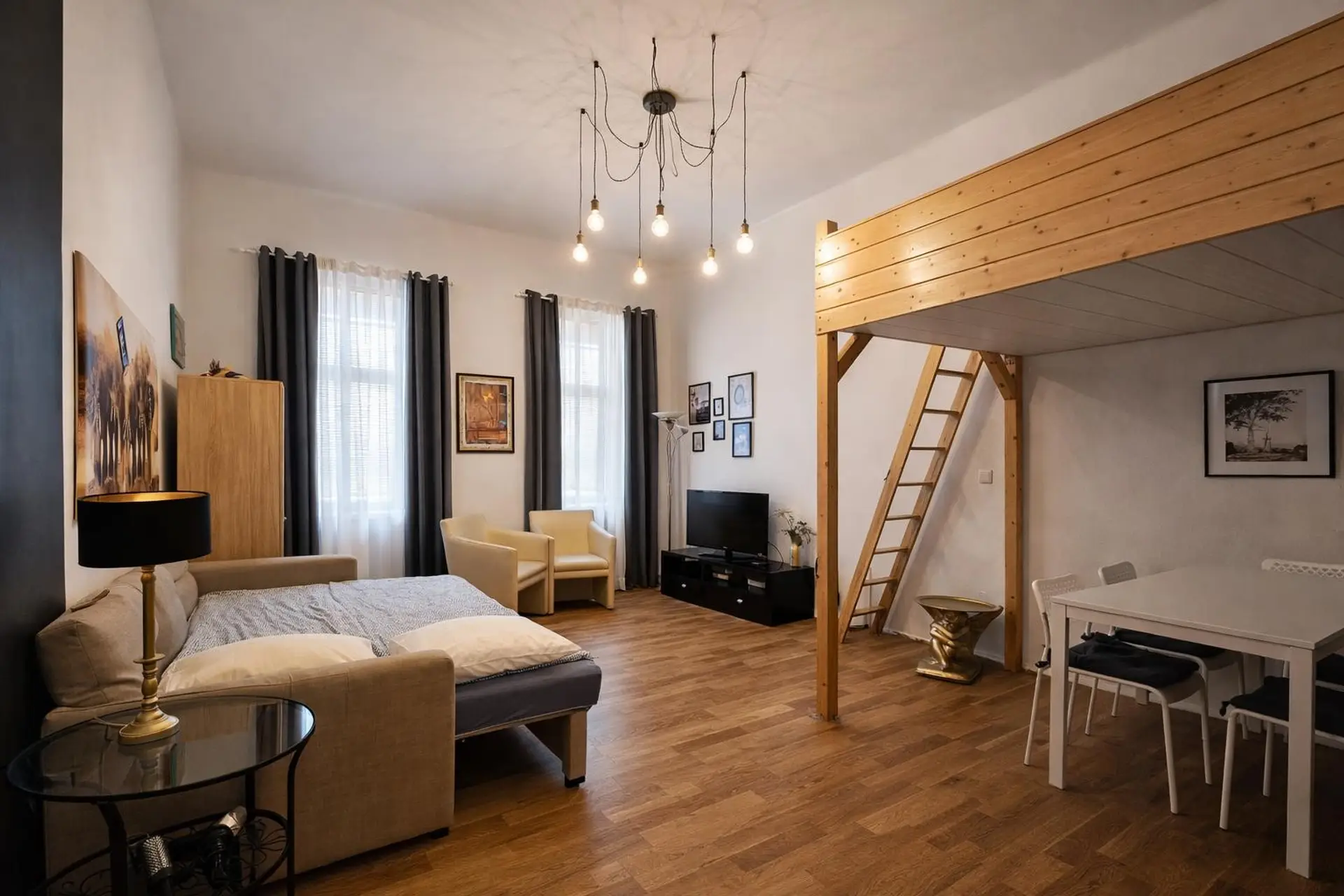 Großzügiger Wohn- und Schlafbereich mit vielfältigen Einrichtungsmöglichkeiten