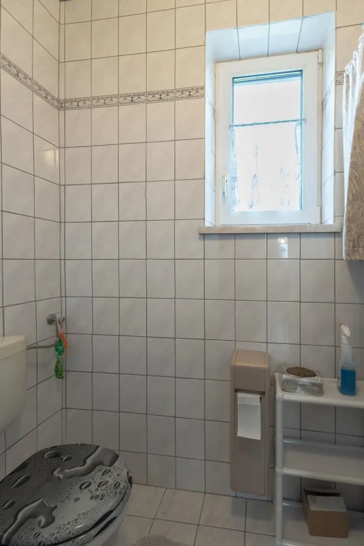 Entrance hall, two bedrooms, separate kitchen with a tiled stove (heating the entrance hall and living room), dining room, living room with direct access to the terrace, bathroom, separate WC, and a storage room.