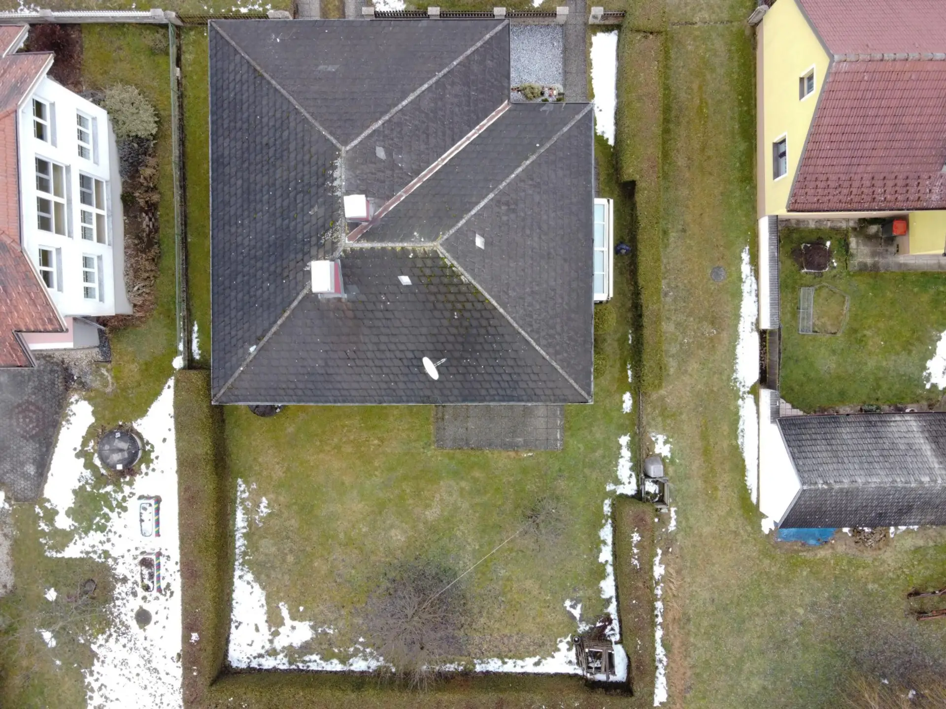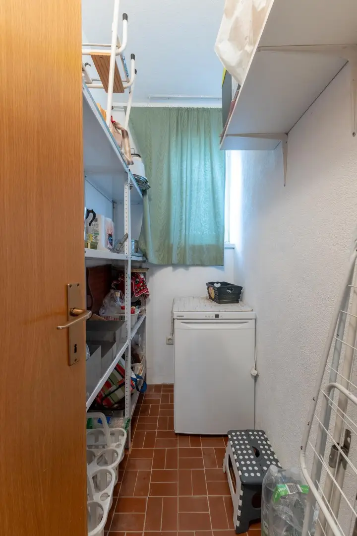The full basement (90m²) provides additional space – ideal for hobbies, a workshop, or simply plenty of storage. Heating is provided by an oil-fired heating system (tank capacity approx. 3,000 liters).