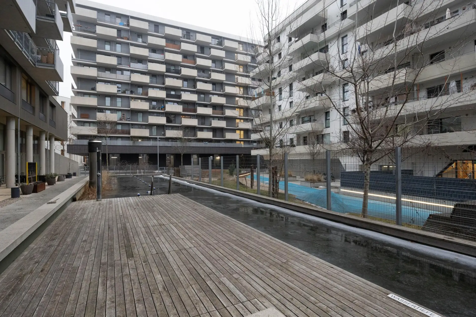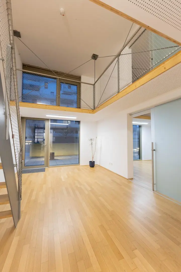 Neben vielfältigen „share“-Bereichen wie der 300m² großen Dachterrasse mit Urban Gardening, einem Event Space für bis zu 90 Gäste, dem ca. 33m langen Schwimmteich, Food Storage, Fahrradkeller für ca.120 Fahrräder und einer Werkstatt, bieten vor allem die EG-Bereiche flexible Nutzungsmöglichkeiten: