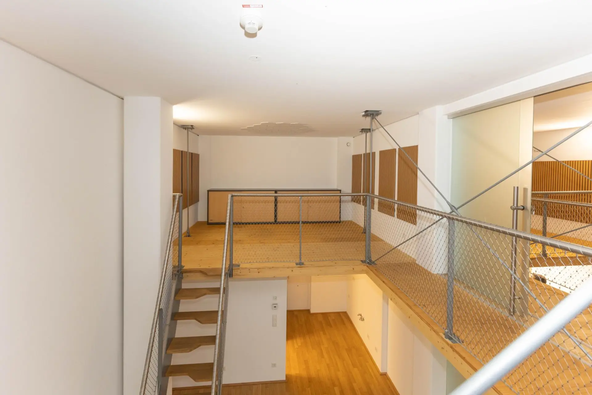 Die Galerieebene ist mit Dreischichtplatten in Fichte natur ausgeführt.