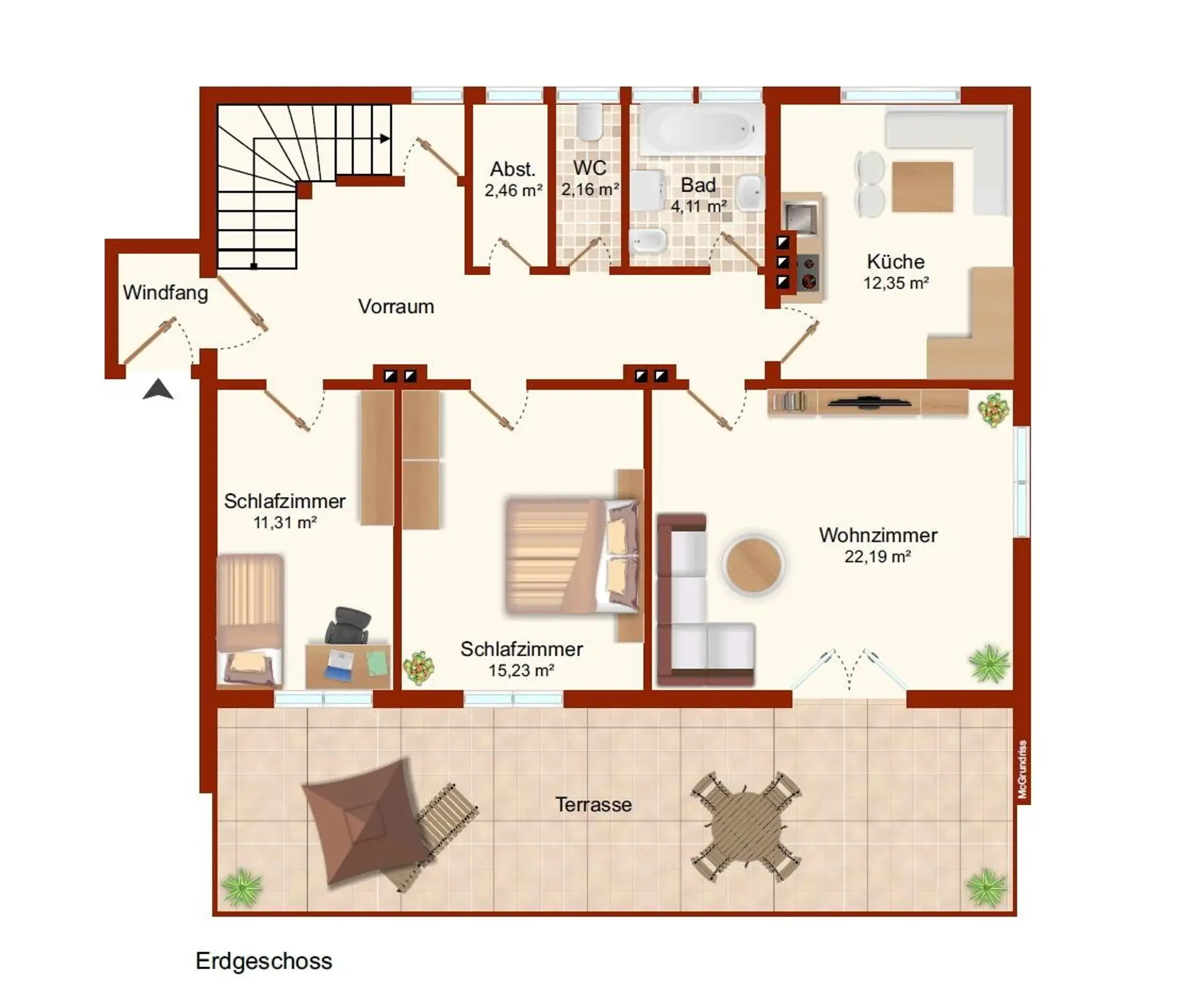 Es können hier auch 2 Familien ungestört wohnen.