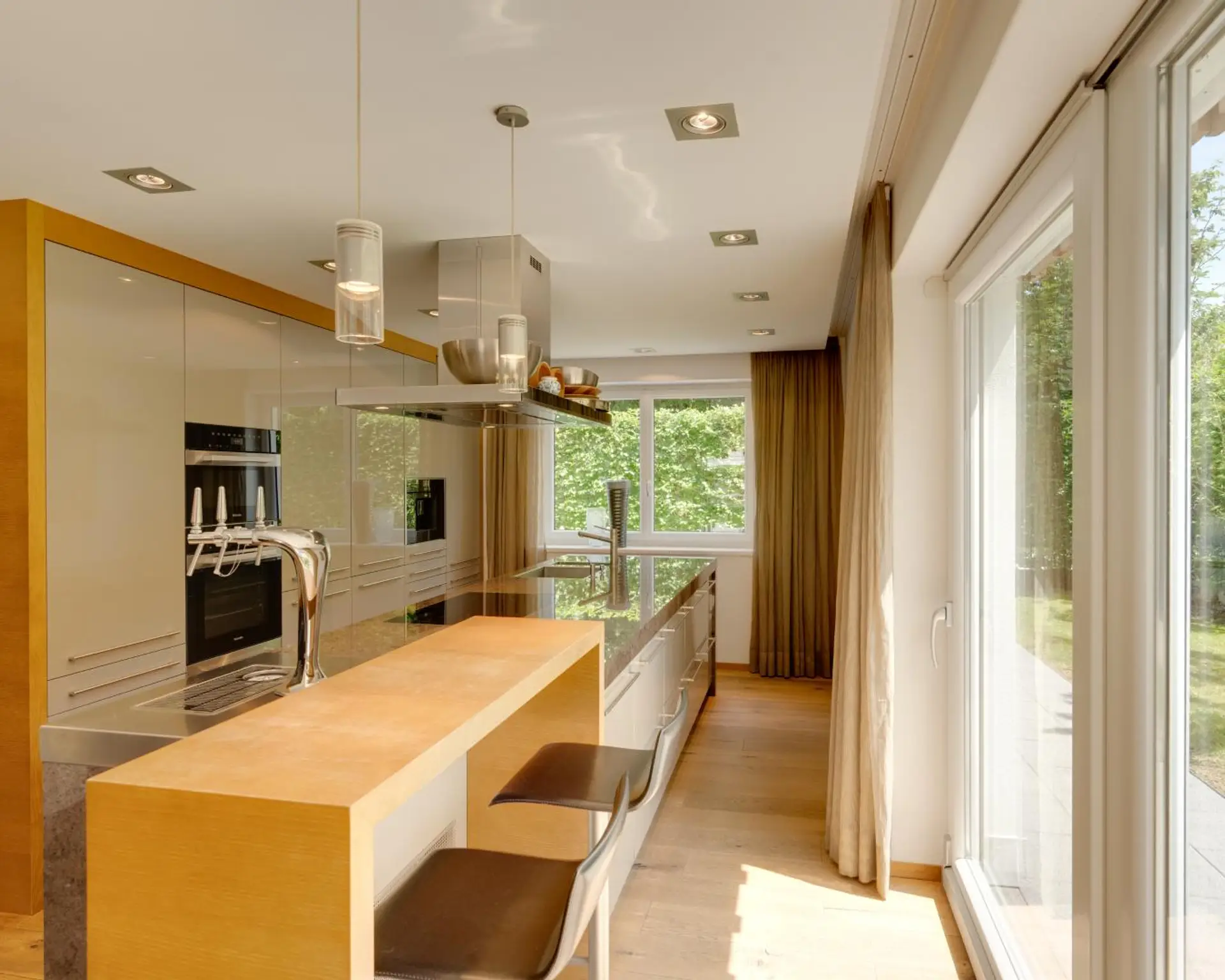 - Technisches Premium-Level: Hausmanagementsystem (Loxone), Sonos Soundsystem, elektrische Rollläden, Glasfaseranbindung