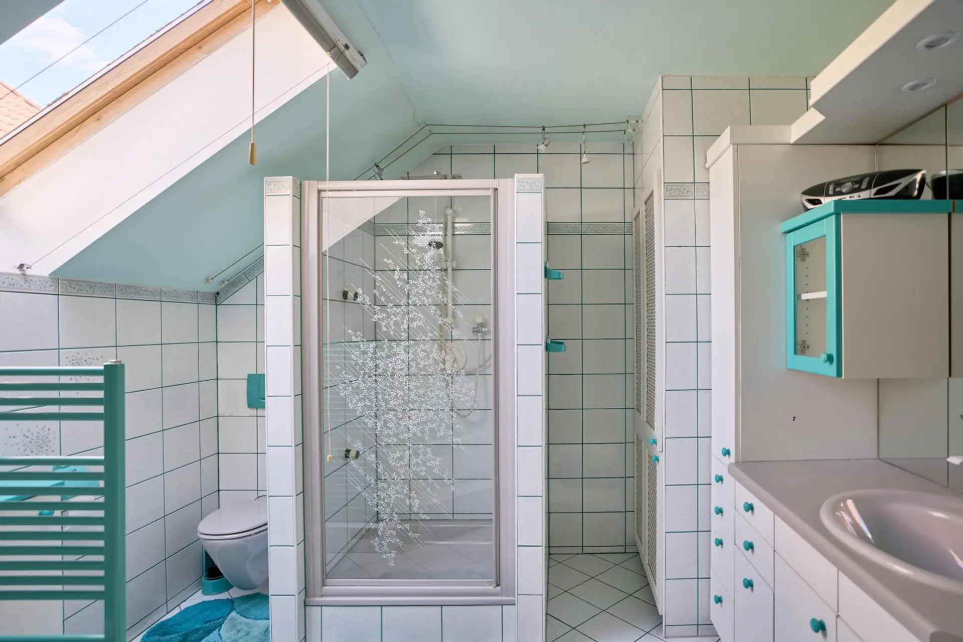 Im Obergeschoss erwarten Sie drei gut geschnittene Zimmer, wobei zwei davon direkten Zugang zum Balkon bieten. Ein Badezimmer mit Eckbadewanne und Dusche sowie ein begehbarer Schrank sorgen für zusätzlichen Wohnkomfort und ein funktionales Raumkonzept. Ein durchdachtes Detail mit hohem Alltagskomfort: Der im Badezimmer integrierte Wäscheabwurf führt direkt zur Waschküche im Kellergeschoss.