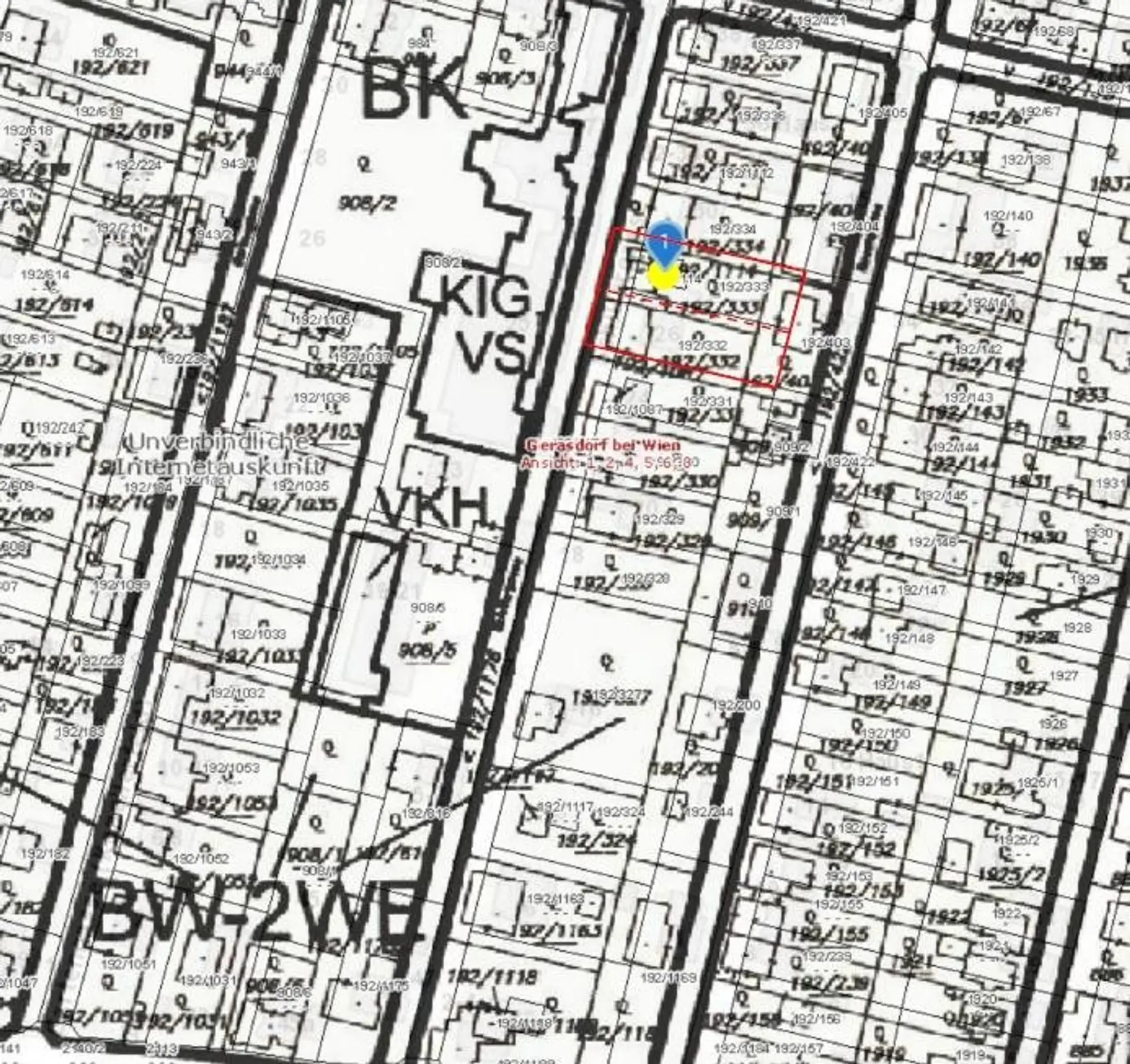 Widmung & Bebauungsmöglichkeiten Laut gültigem Flächenwidmungsplan weist das Grundstück die Widmung BW – 2WE (Bauland-Wohngebiet für bis zu zwei Wohneinheiten) auf.