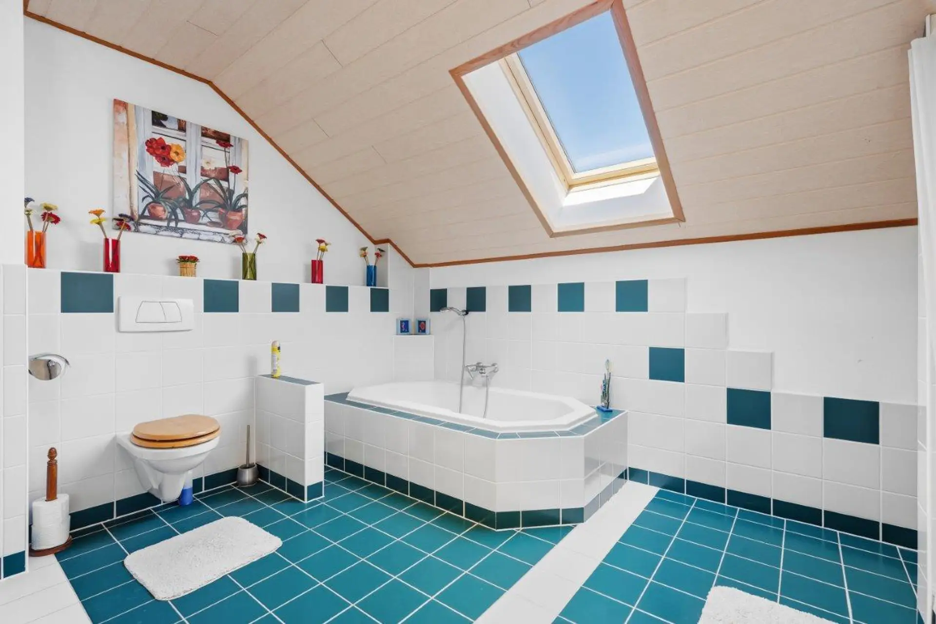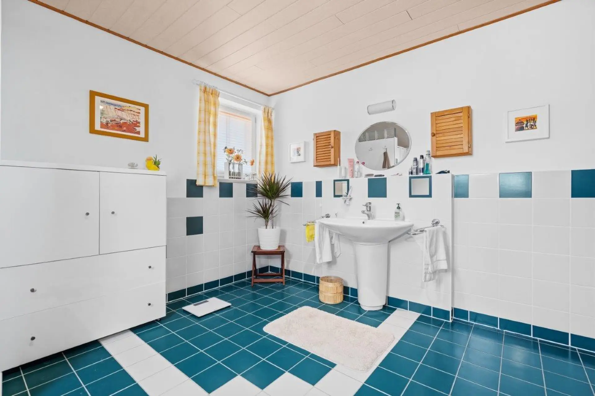 Beeindruckend ist die Raumaufteilung mit den drei Zimmern im Dachgeschoß, das große Bad, der gut nutzbare, überdachte Balkon mit Panorama-Blick und im Keller die wertvollen Arbeitsräume, die Sauna und dazu dieses befreiende Gefühl, dass überall ausreichend viel Platz verfügbar ist - kein "Theater".