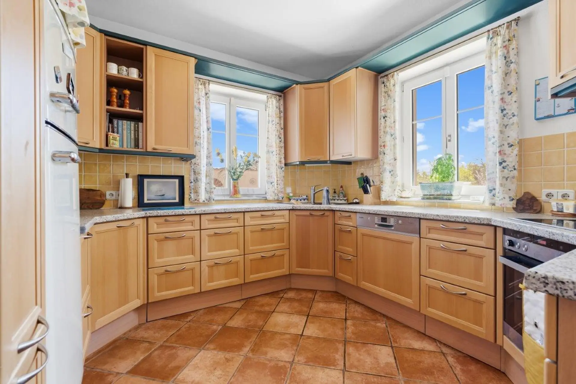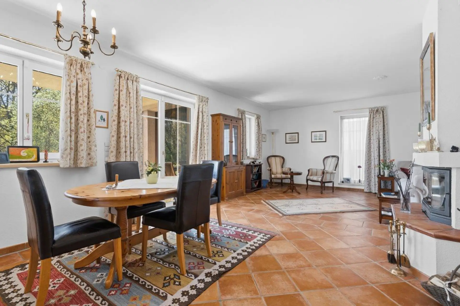 2000 errichtet, schirmen Haus und Garage den Gartenbereich gut ab, die schmiedeeiserne Einfriedung und die gepflasterte Auffahrt vermitteln einen sympathischen ersten Eindruck von der Liegenschaft, der sich beim Betreten durch die hellen, großen Räume zusehends verstärkt.