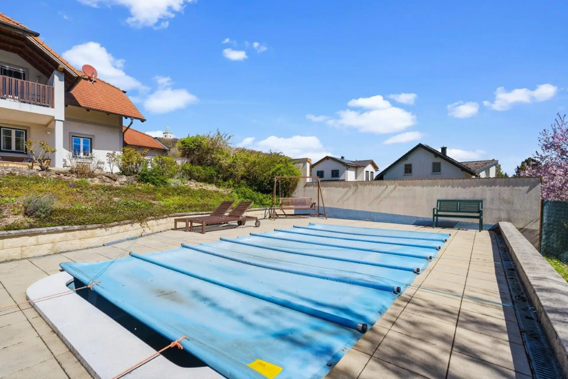 Zum Verkauf gelangt ein größeres Einfamilienhaus mit südlich orientiertem Garten, voll unterkellert, mit Garage und schöner Poollandschaft im bezaubernden Umfeld Karnabrunns mit seinen nahen Wäldern.