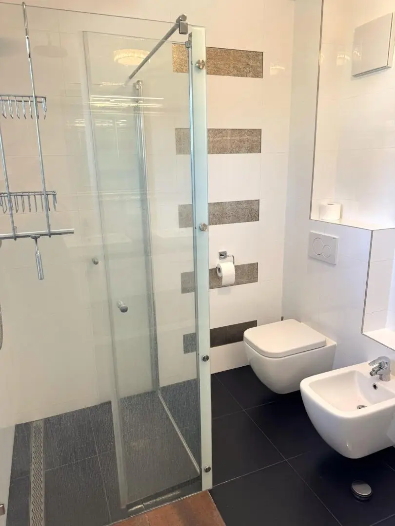 Vorraum ca. 9m², Zimmer ca.18m² mit Schrankraum, Zimmer ca. 13,4m², Zimmer ca. 12m², Badezimmer ca. 6m² mit Fenster, Doppelwaschbecken, Dusche, WC, Bidet.